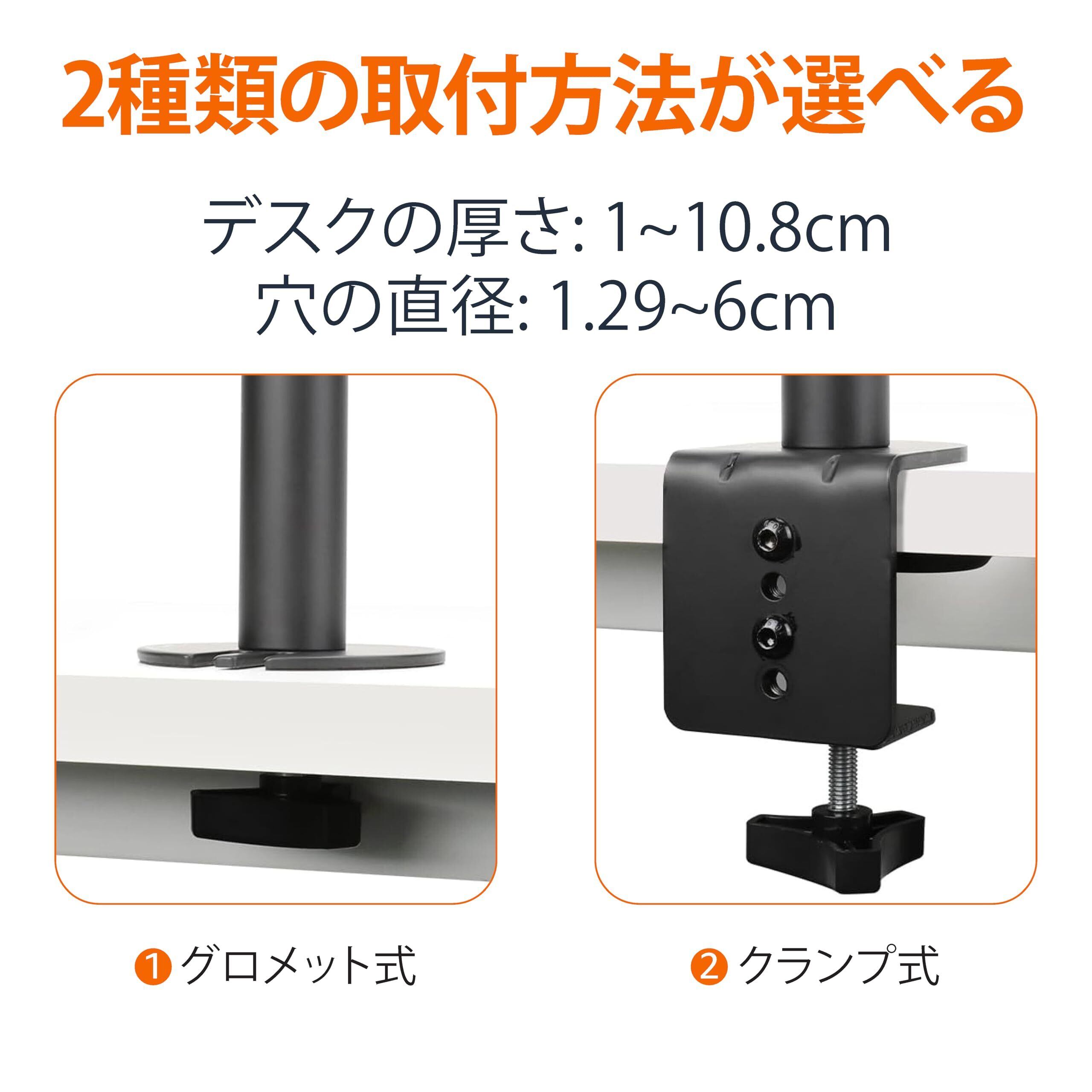 組立・取付簡単: C型クランプとグロメット式ベースが付いており、約1cmから10.8cm以内の厚さの机に取り付けられます。取り付け穴の直径は約1.29cm-6cm以内。