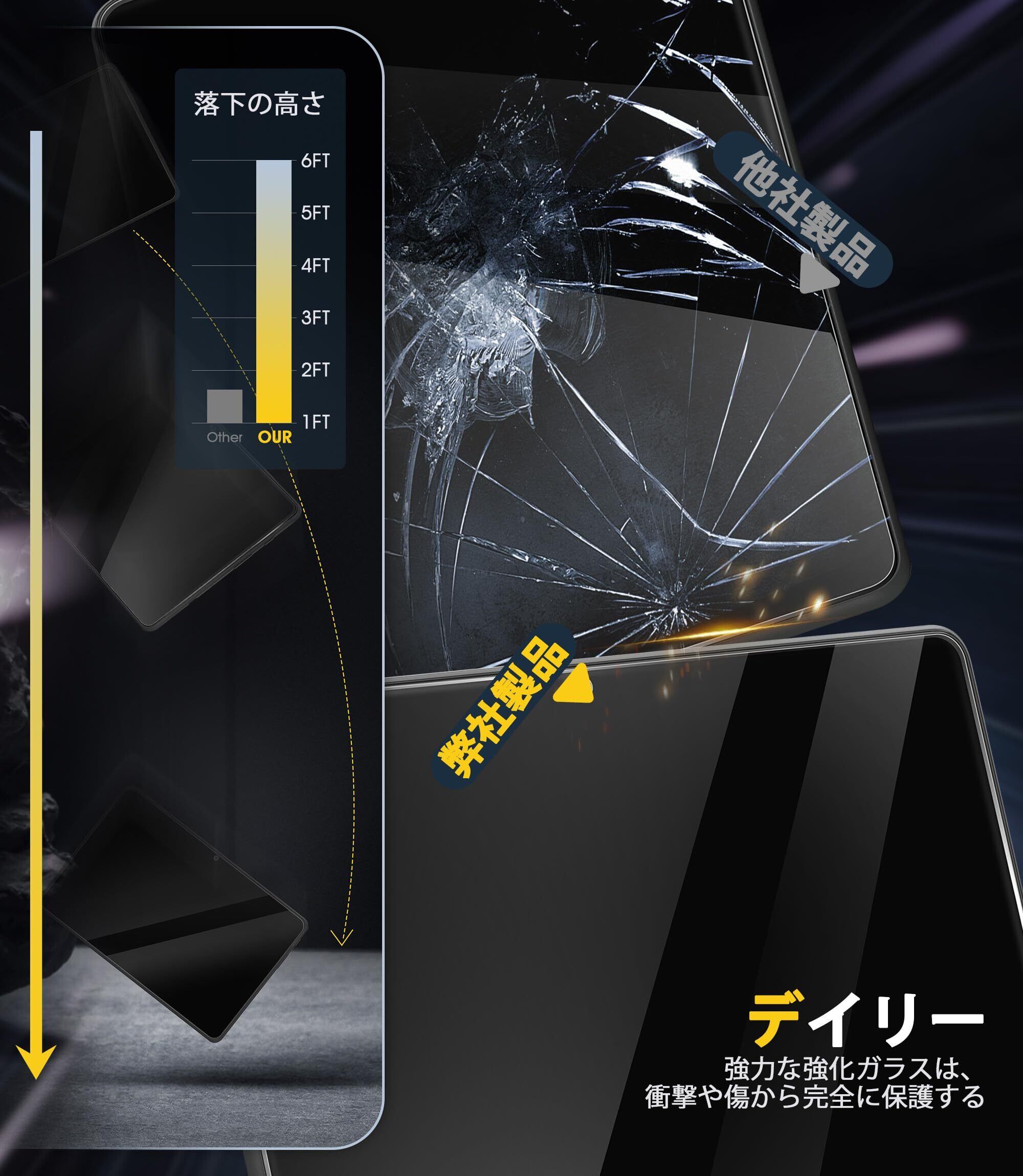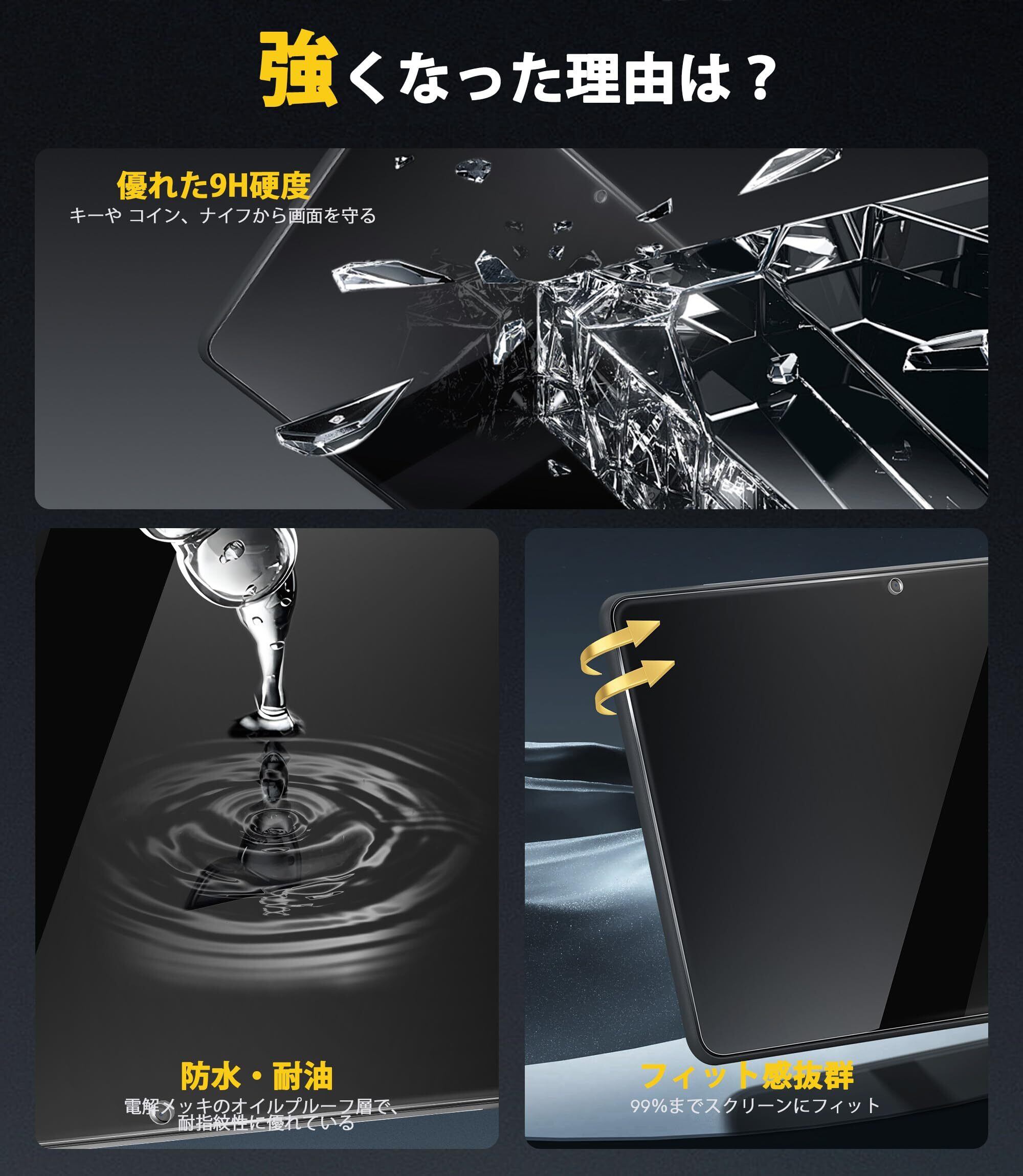 【耐性良好】 カッターなどの鋭利なものを当たってもキズが付きにくくて高い強度を持ち表面硬度9Hが特徴です。ガラス飛散防止の特殊加工、耐油性と撥水性に加え、指紋耐性が強いです。衝撃吸収の特性により、転落とかの外力から HD 10 2023画面への衝撃ダメージを最小限に抑えることができます。