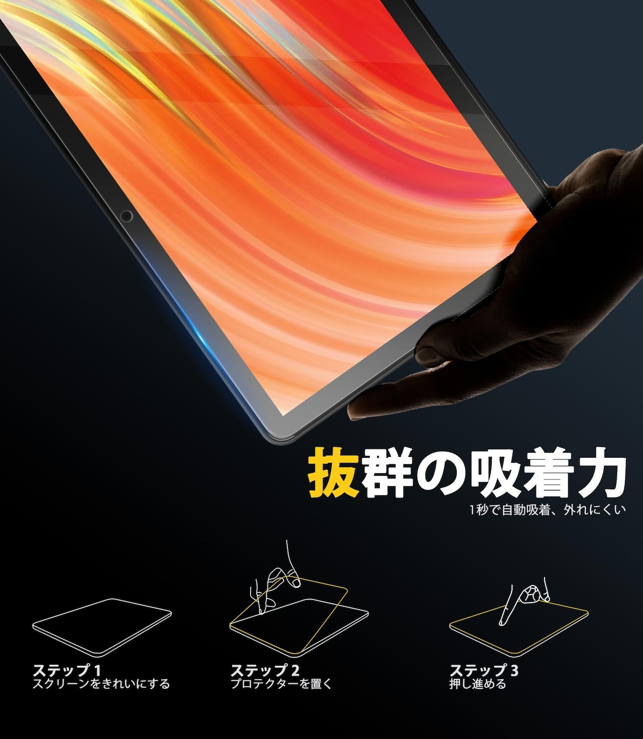 【タッチ感】極薄デザイン、かつフィルム表面に高耐久撥油コーティングが施されたことで、指紋や汚れが付きにくくになります。画面上の操作も違和感なくスムーズに行えます。保護フィルム自体の存在感が低いので、HD 10 2023が快適で滑らかな操作できます。