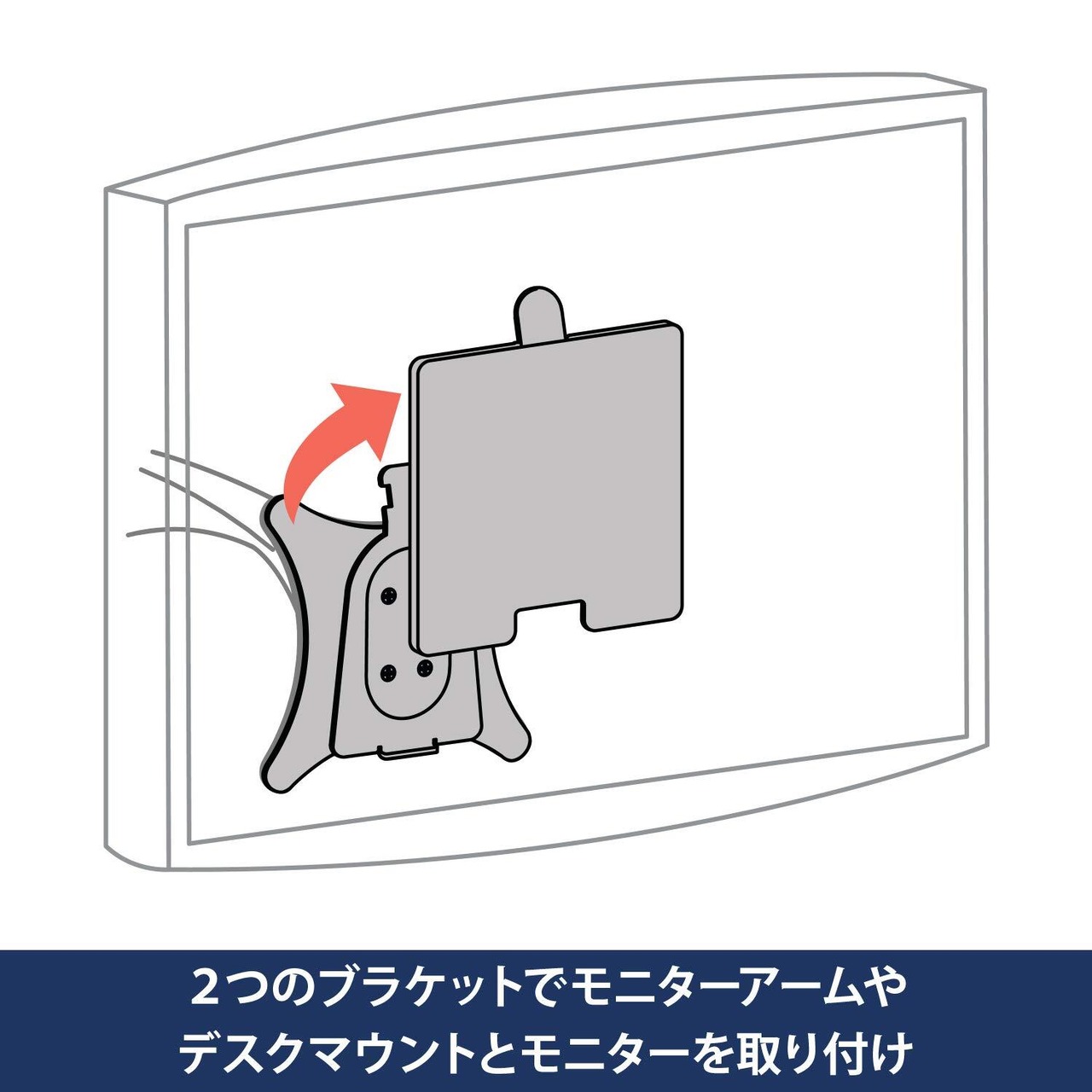 クイックリリースブラケットは、エルゴトロンのモニタアーム、デスクスタンド、ウォールマウントに取り付けできます。