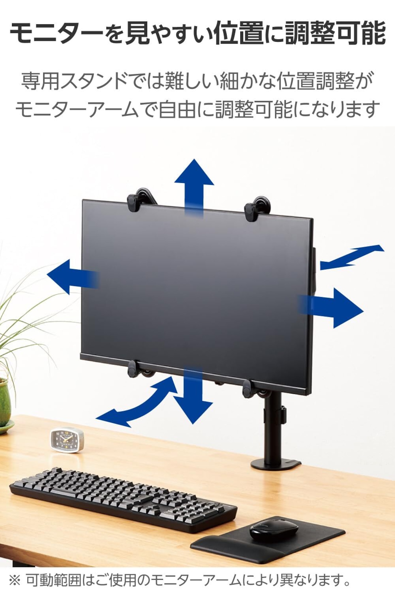 ■VESA規格非対応のモニターを、モニターアームに取り付けて、見やすさを向上させるように調節することができます。