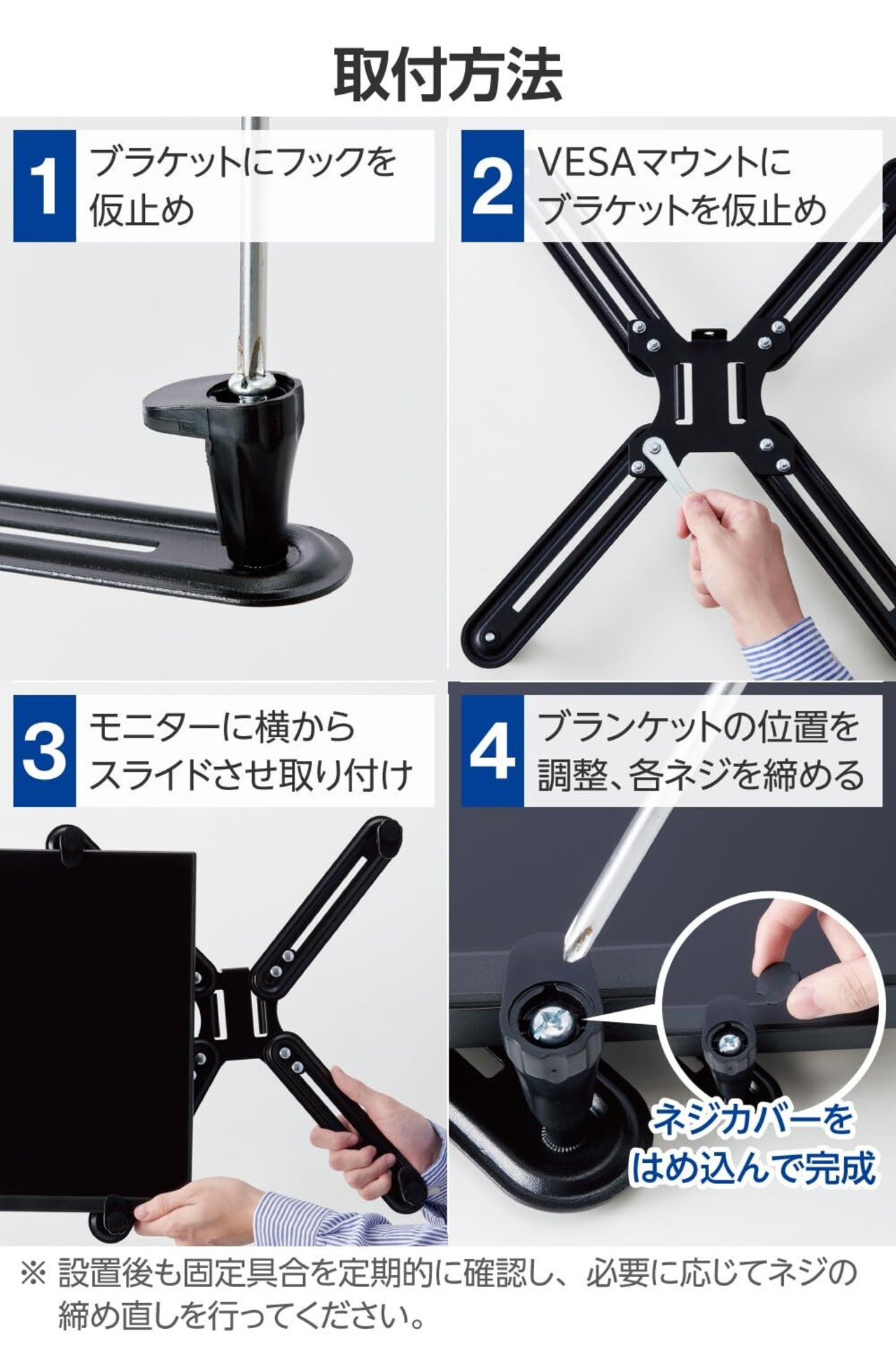 ■※ネジの締めすぎはモニターの破損につながりますので、ご注意ください。
