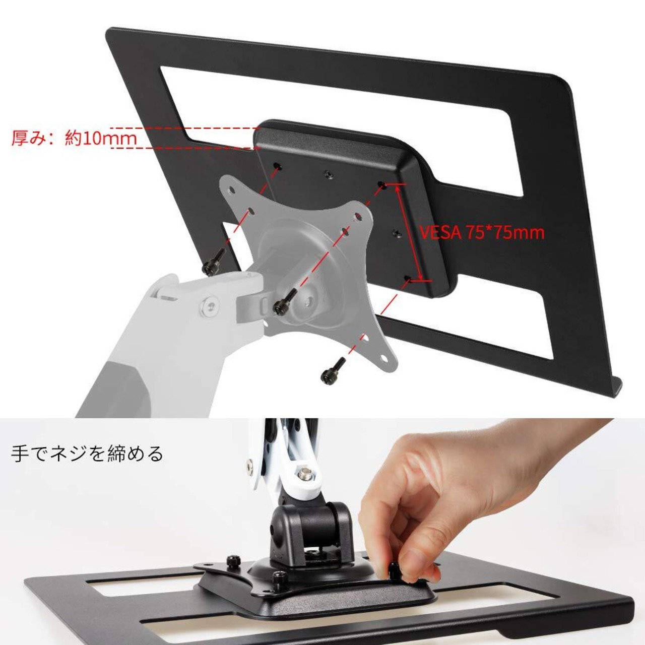 ノートパソコンに人間工学的なワークスステーションを提供し、モニターアームをノートパソコンVESAマウントに作るのに役に立ちます。ノートパソコンの画面の高さを上げて見やすく調節、首の負担を軽減できます。