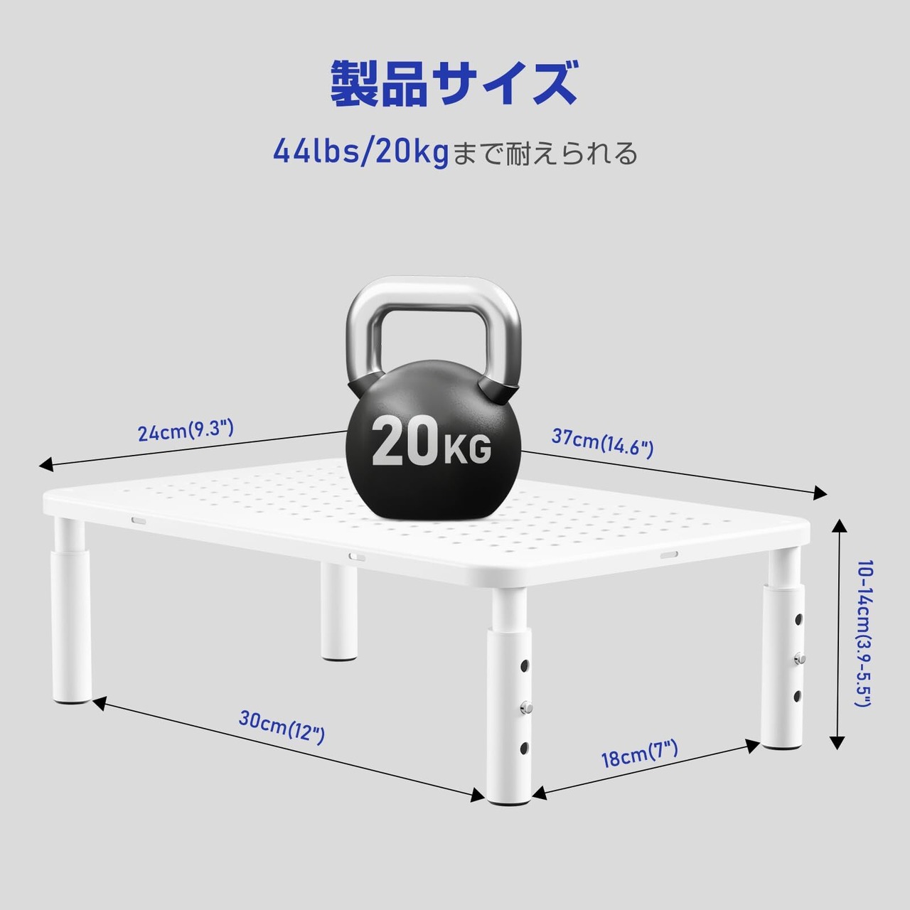 【安定性と安全性】-このモニタースタンドは粉体塗装されたスチール製で、高品質のスチール素材により、最大20kgまで耐えることができます。そして、安定性を高めるために4つの滑り止めゴム足を強化しました。デスクトップスタンド、ノートパソコンスタンド、PS4モニタースタンド、パソコンスタンドとして最適です。