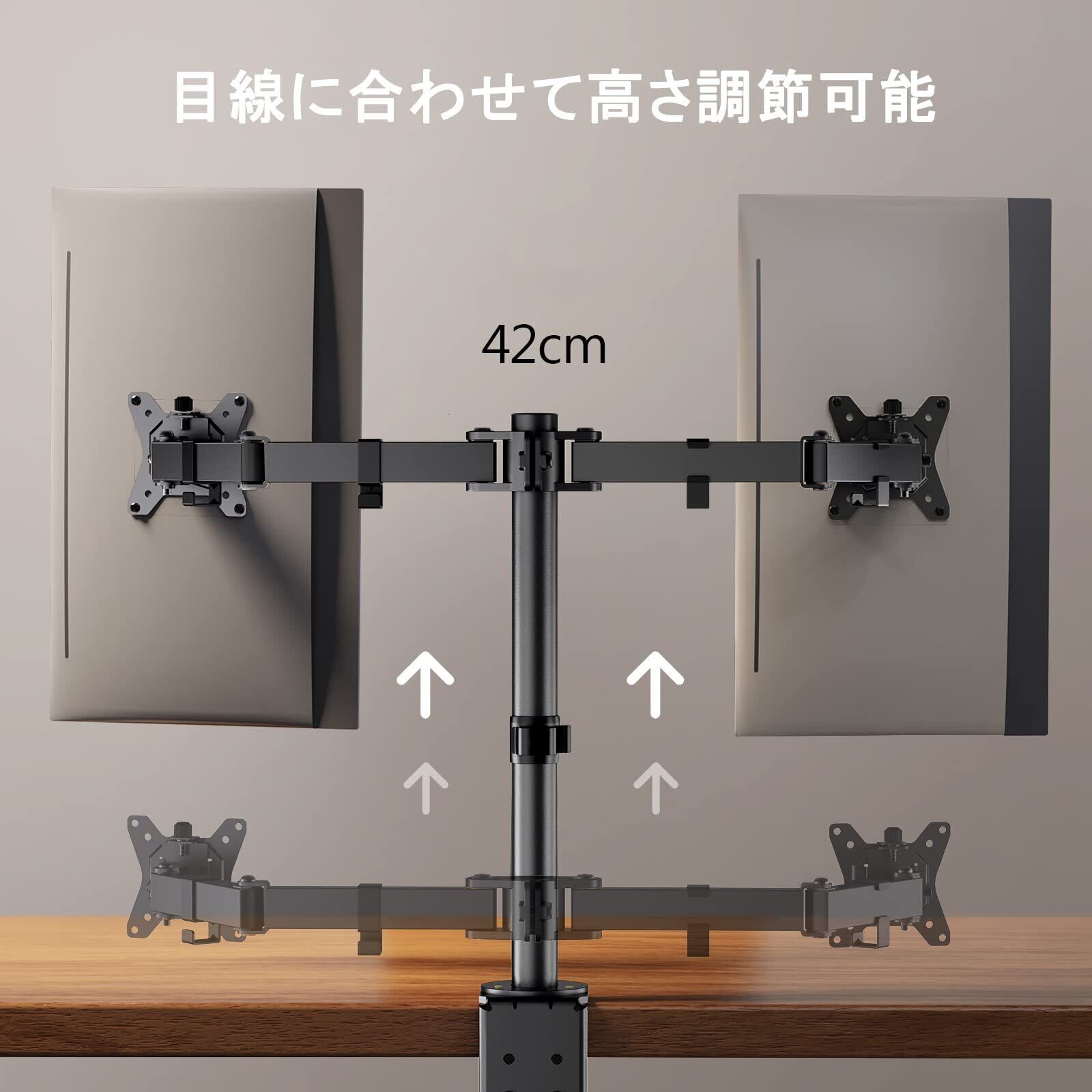 ErGear PCモニターアーム 13~32型 デュアル 耐荷重8kg ポール式 2画面 ディスプレイアーム VESA規格75*75mm 100*100mm 多角度調節 配線収納