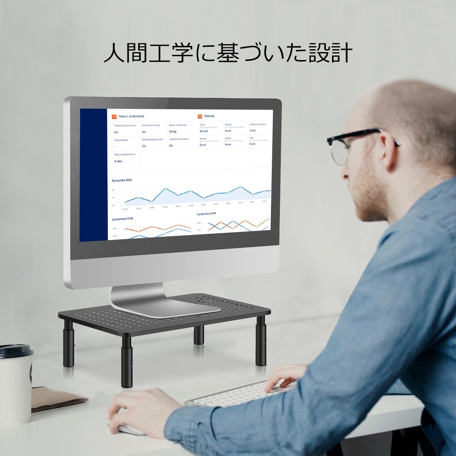 【丈夫で安定性抜群】頑丈なスチール製で、しっかり物を支えます。脚の下部にはゴムパッドがあるので、滑り止めることができて、傷を防止することもできます。20kgまでのノートパソコンとモニターを載せることができます。