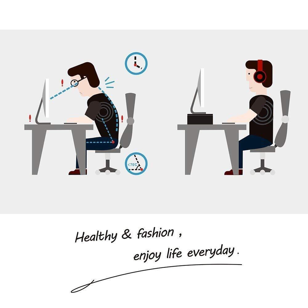 【人体工学設計&猫背対策・作業率アップ】机上ラックにモニターを載せることで目線が約11.6cm高くなり、自然と首や背筋が伸びるようになります。ヘルシーなワーク姿勢を維持し、テレワークの作業効率も上がります。