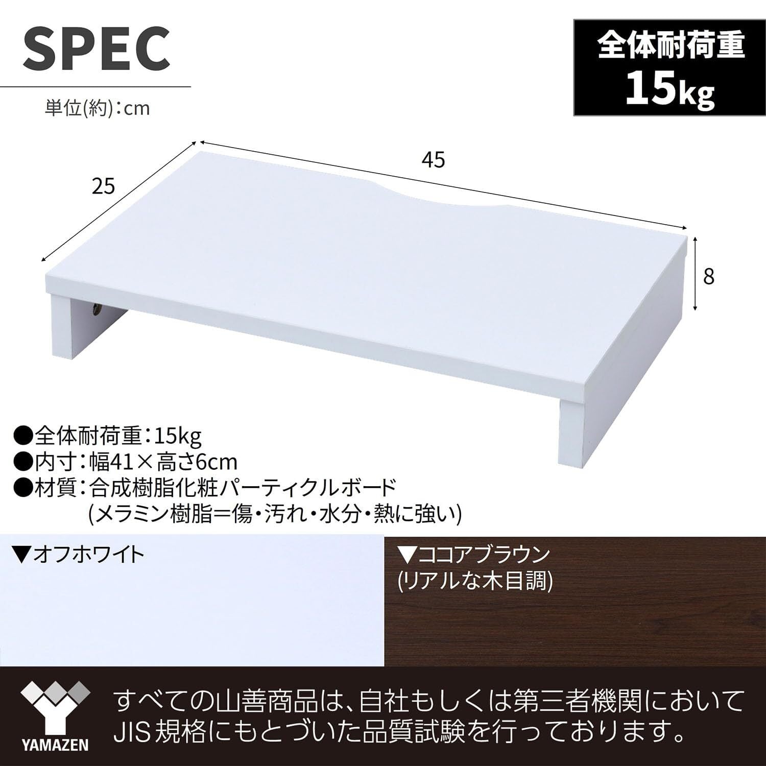 山善(YAMAZEN) モニター台 (机上台) 木製 傷・汚れ・水分・熱に強い コンパクト パソコン台 幅45×奥行25×高さ8cm 組立かんたん オフホワイト MDTS-4525(OW) テレワーク