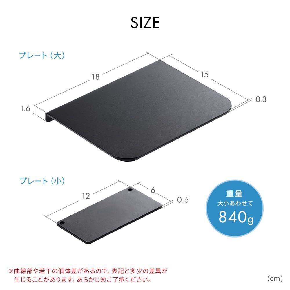 【仕様】製品サイズ:プレート大/W180×D150×H16mm、プレート小/W120×D60×H5mm (どちらもプレートの厚み3mm、+2mmの滑り止めシート付きで 計5mmになります) 製品重量:840g(大小あわせて) 材質:本体/スチール(粉体塗装)、滑り止めシート/EVAスポンジ 取扱説明書:あり(日本語)