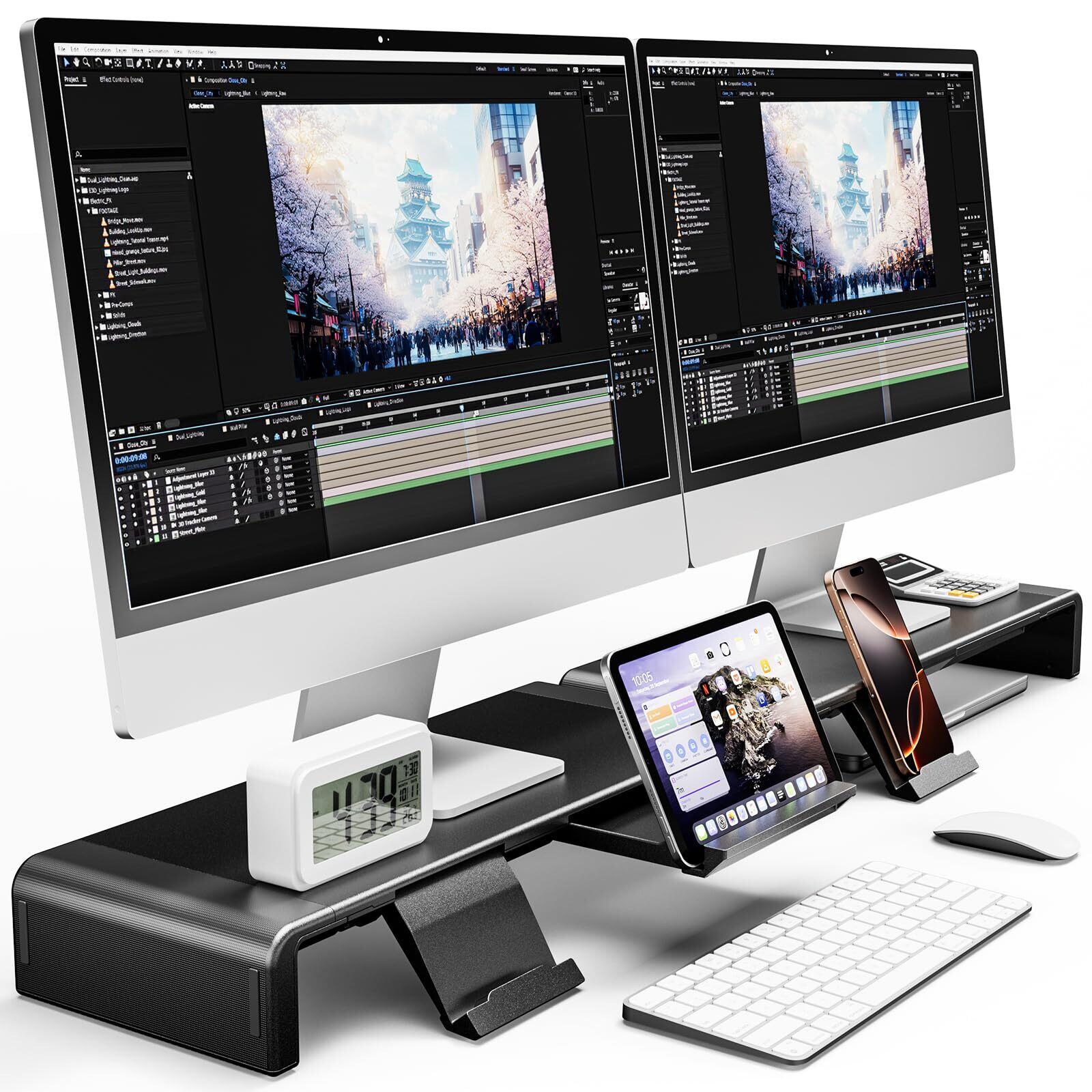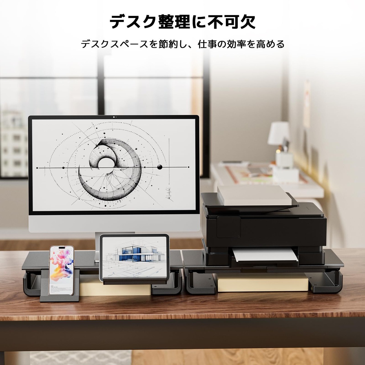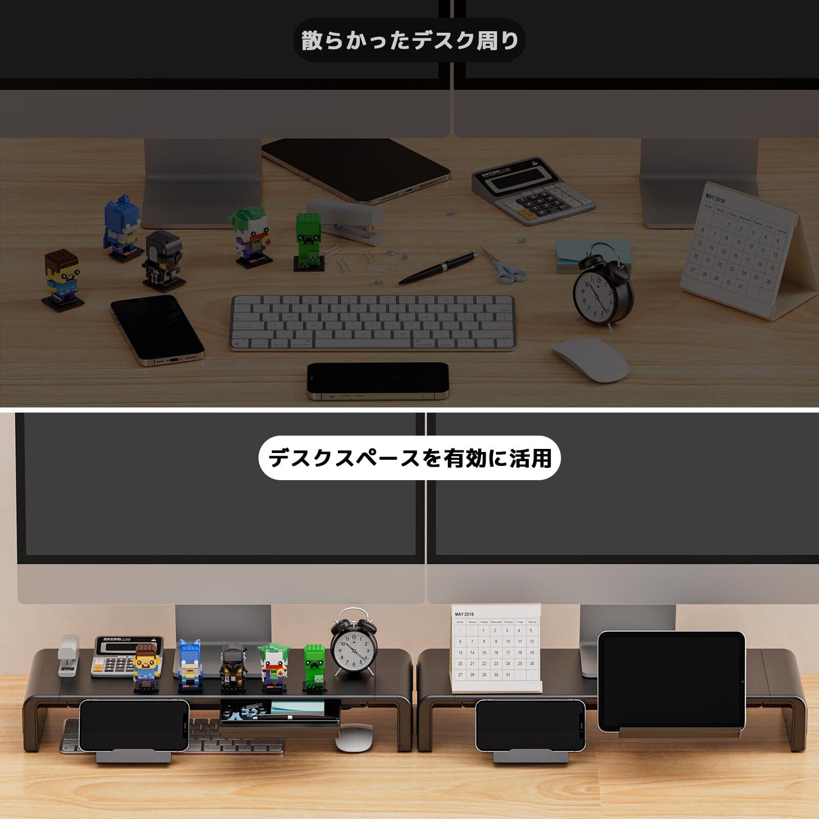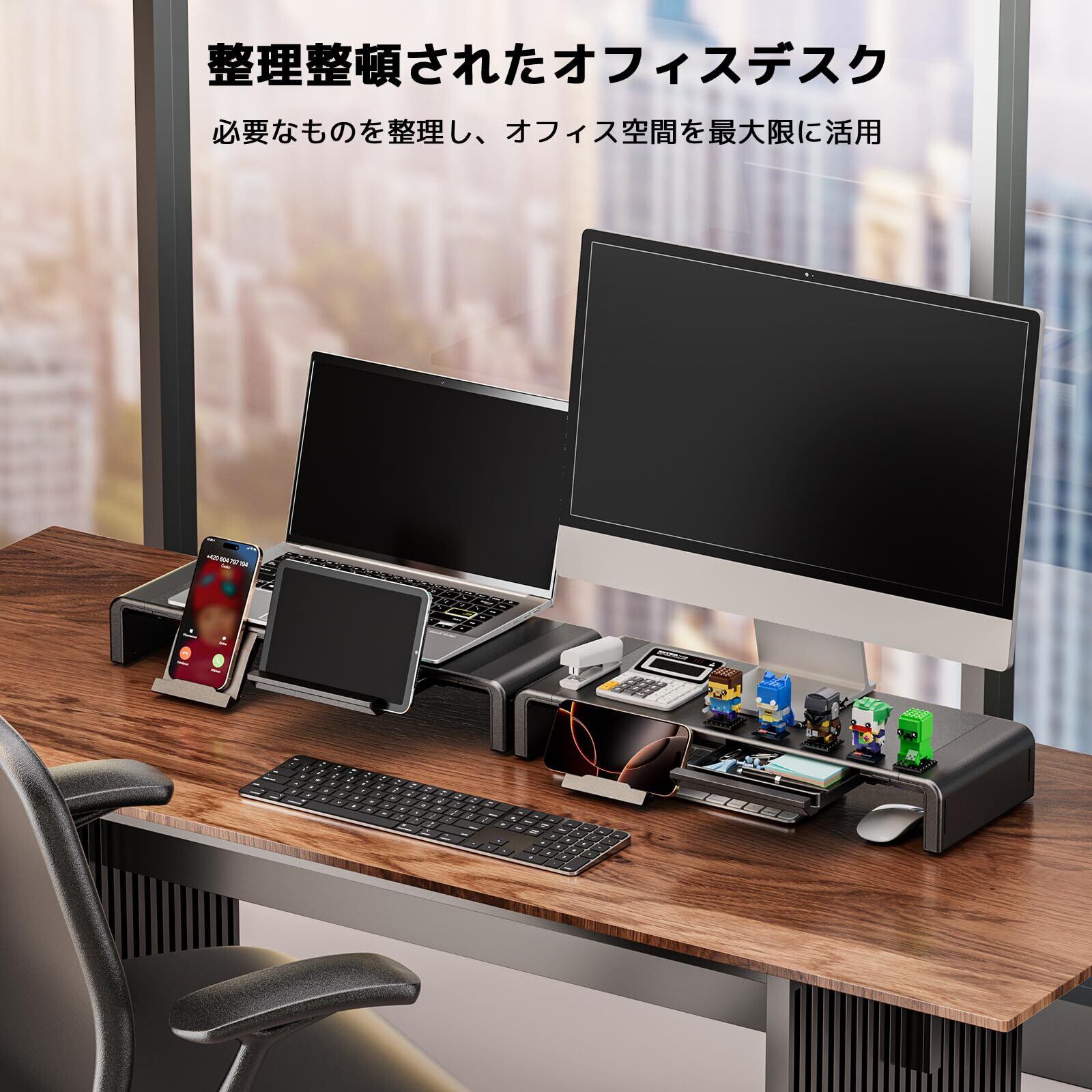 Klearlook モニター台 机上台 耐荷重25kg 折りたたみ式 三段階の幅調整可能 ノートパソコンスタンド モニタースタンド デスクスタンド キーボード収納 引き出し スマホ・タブレットトレー (2個入り ブラック)