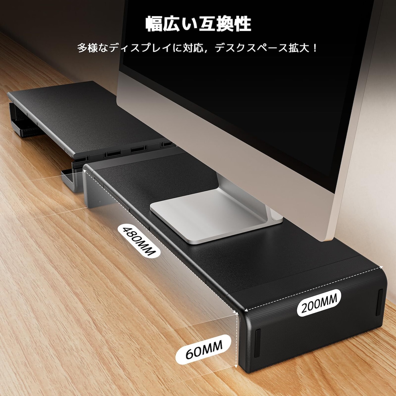 耐久性が高い:耐久性の高い金属フレームで、天板はABSを施しています。頑丈な構造で、25キロまでの重さに耐えるので、どれほど大きなモニターでも問題ありません。
