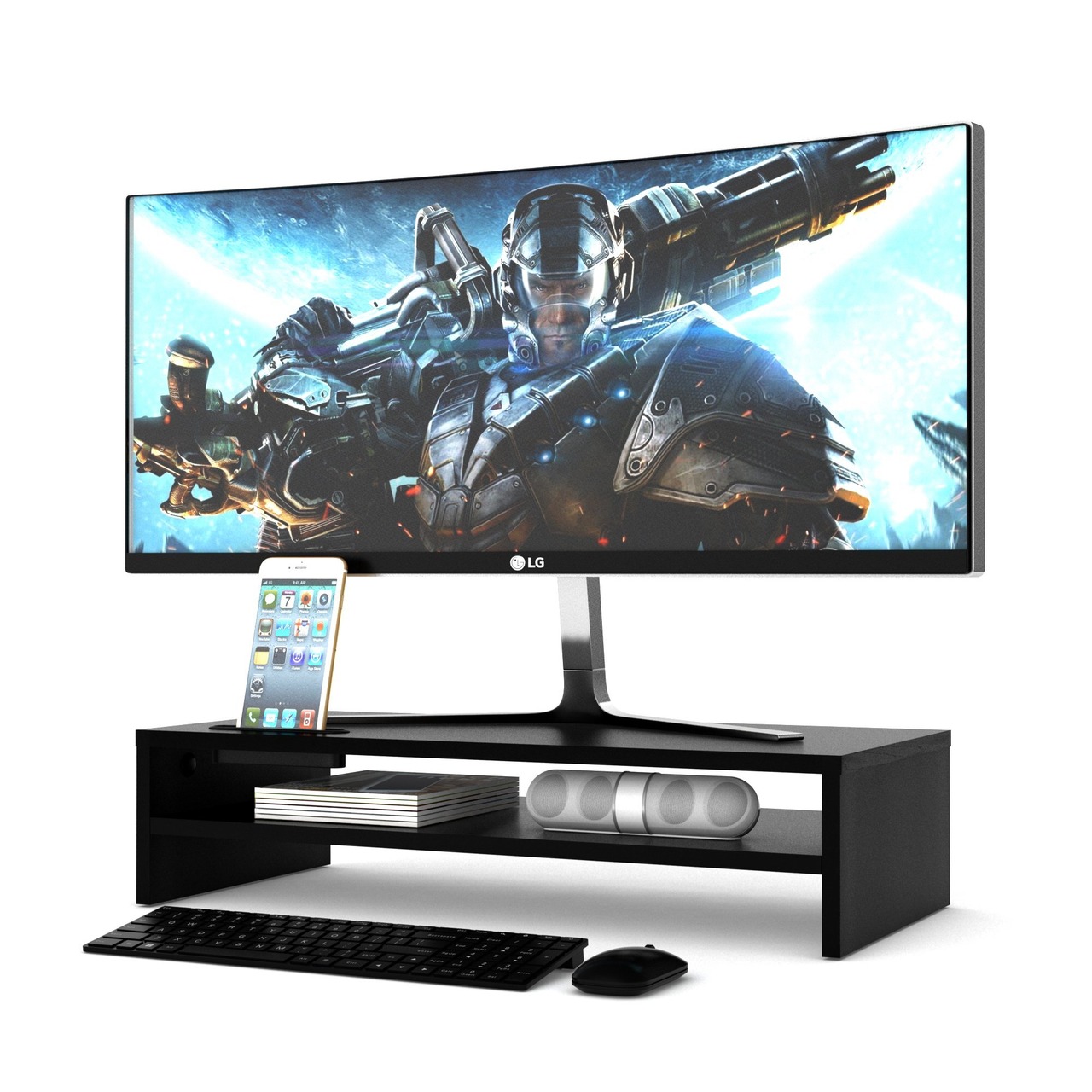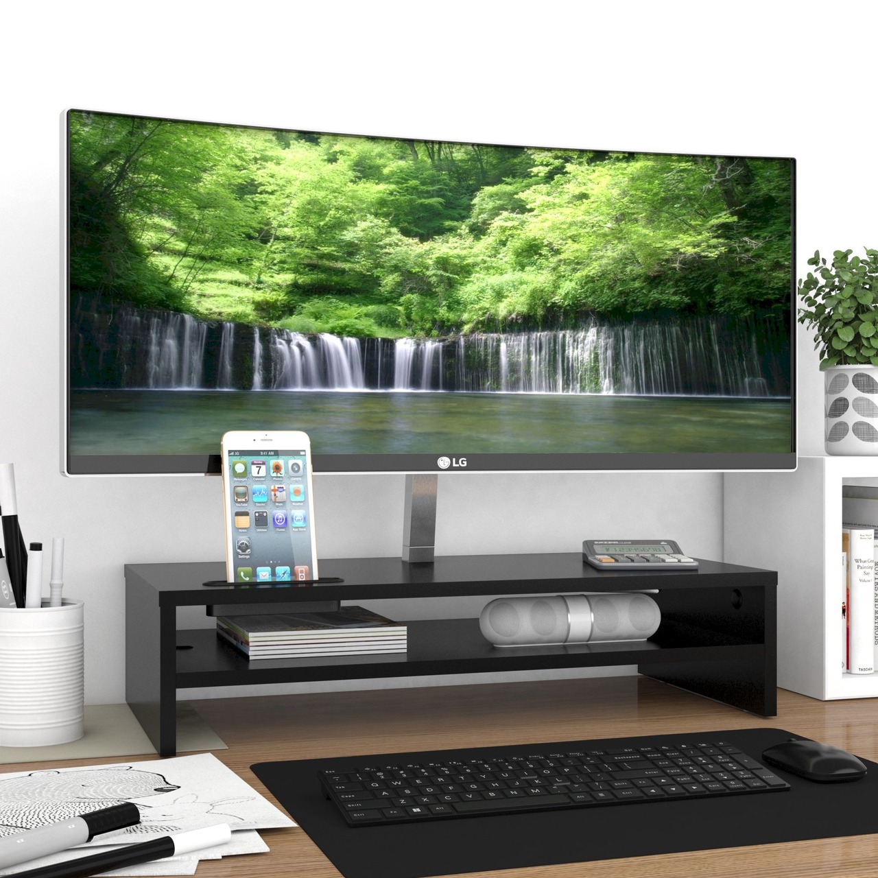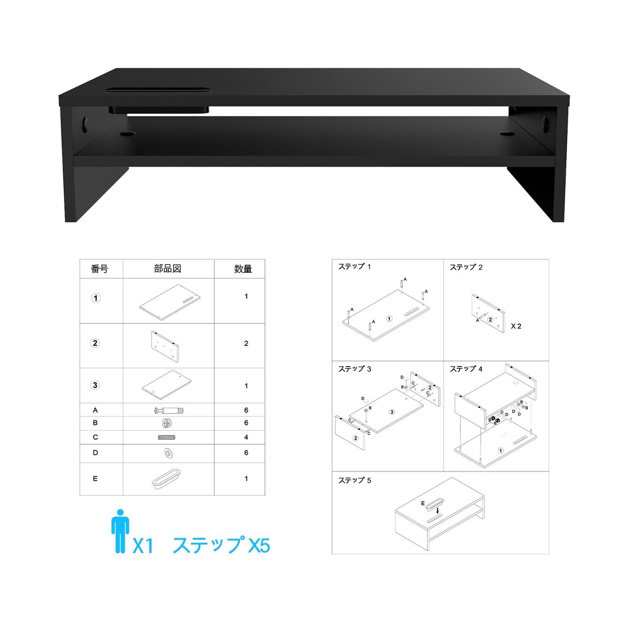 1homefurnit モニター台 机上台 木製パソコン台 PC台 卓上 人間工学デザイン 二段式 机上整理 キーボード収納 スマホ収納 プリンター台 ディスプレイ台 540mmⅹ255mmx142mm 耐荷重30kg モニター/ノートパソコン/プリンター/iMac/ipadに適用 ブラック 適格請求書発行可