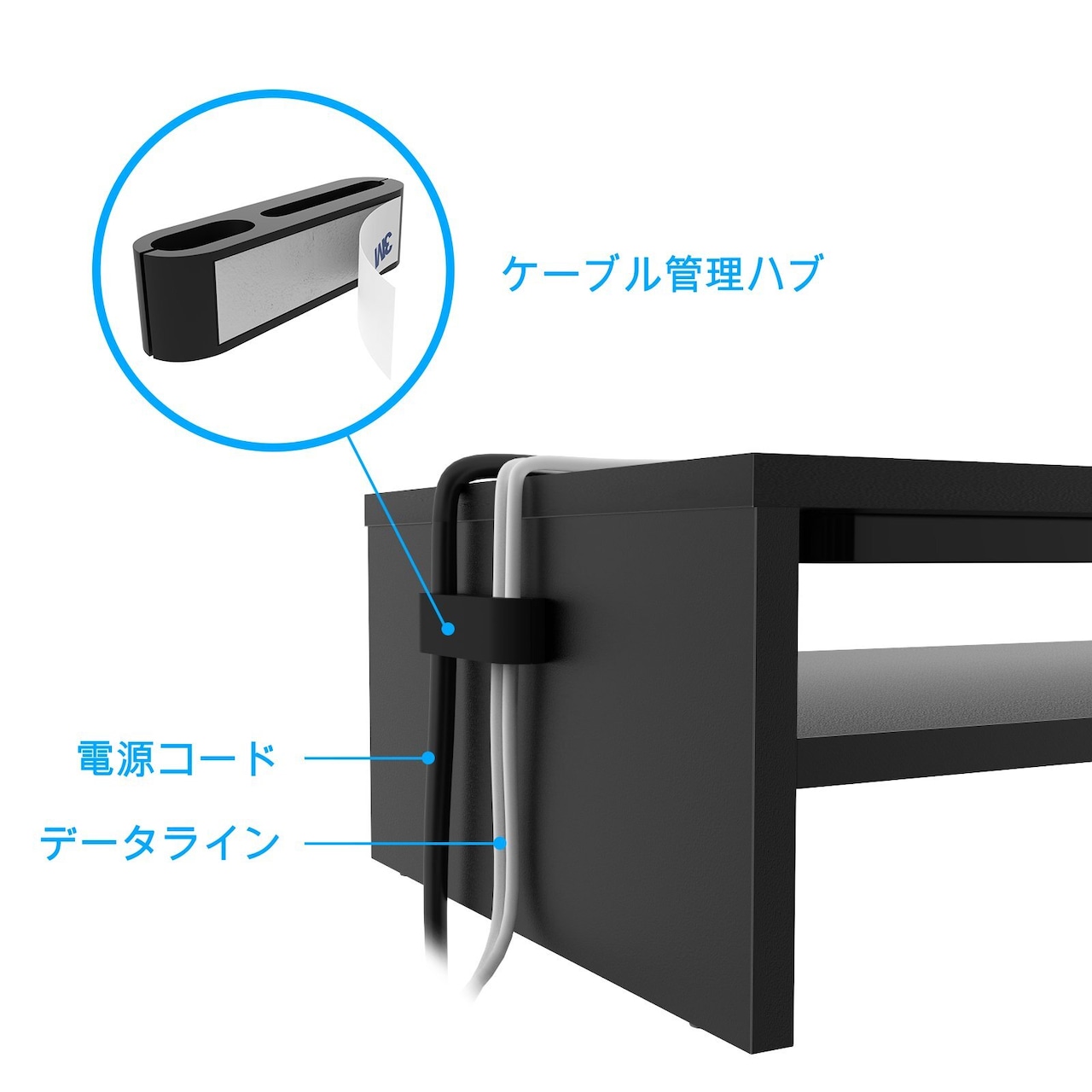 【人間工学に基づいたモニタースタンド】 14cm(142mm)の適正高さで画面を目の位置に調整。540mm幅の広天板が特徴の机上台で、首・肩の負担を軽減します。