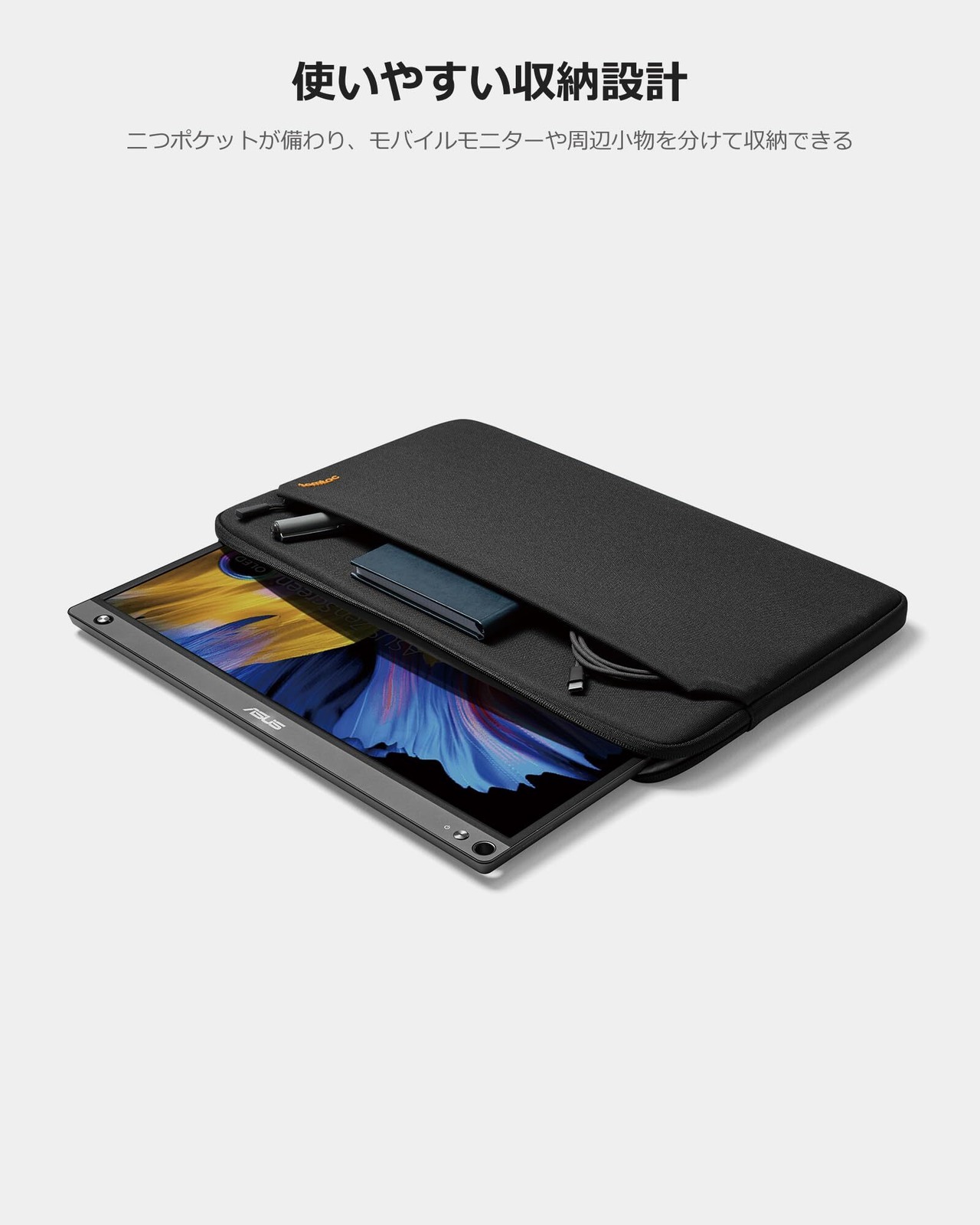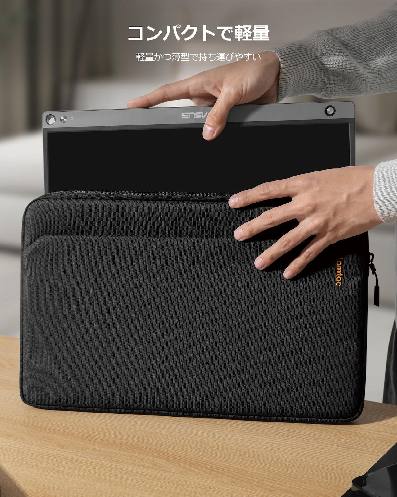 tomtoc 15.6インチ モバイルモニター ケース ディスプレイ スリーブ 保護 薄型 ブラック