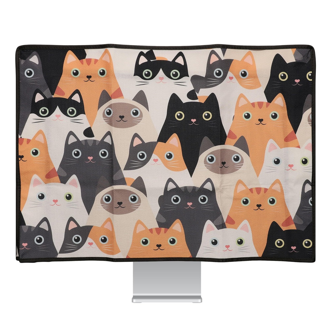 kwmobile 24-26"モニター対応 モニターカバー - PC 画面 パソコン ホコリ 防止 - 防塵 リネン 猫の行進デザイン