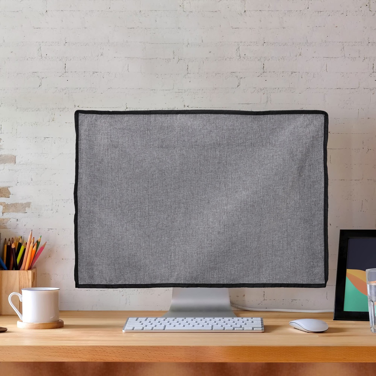 素材: リネンから作られた快適なスリムカバーは、耐引裂性と柔軟性を備え、肌触りも心地良いデザインです。気づくとホコリまみれになってしまうデスクトップモニターをかしこく保護します。
