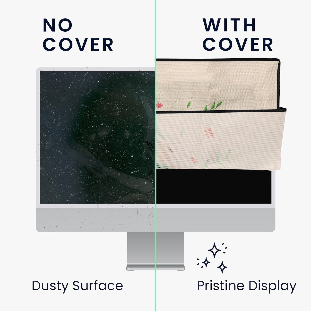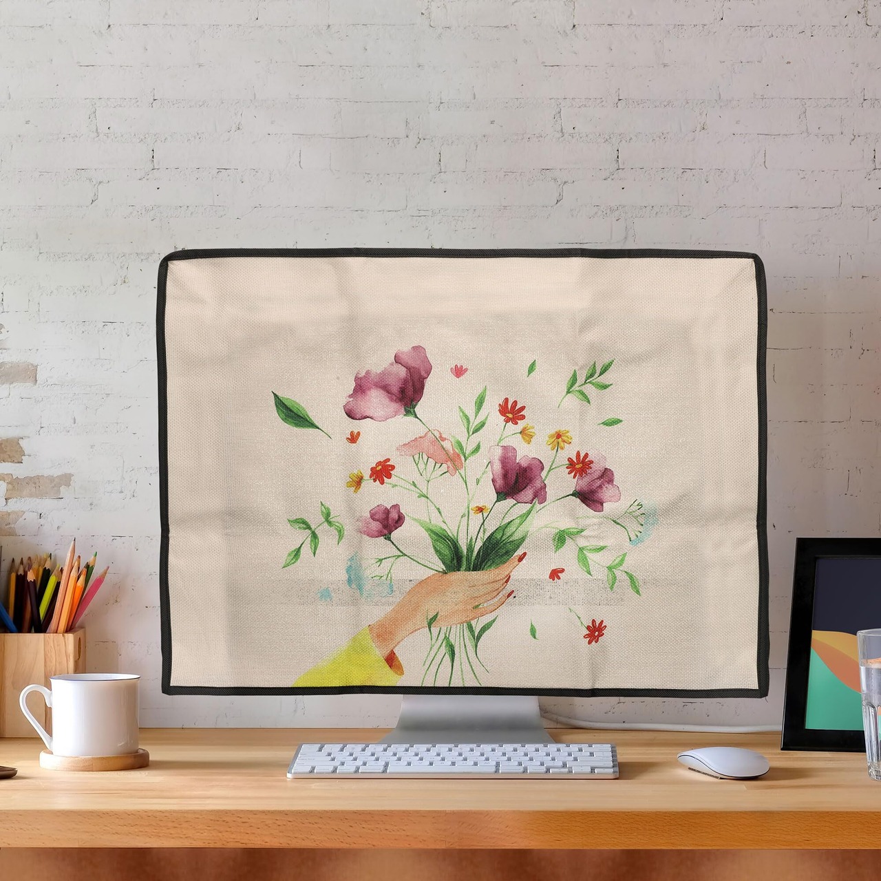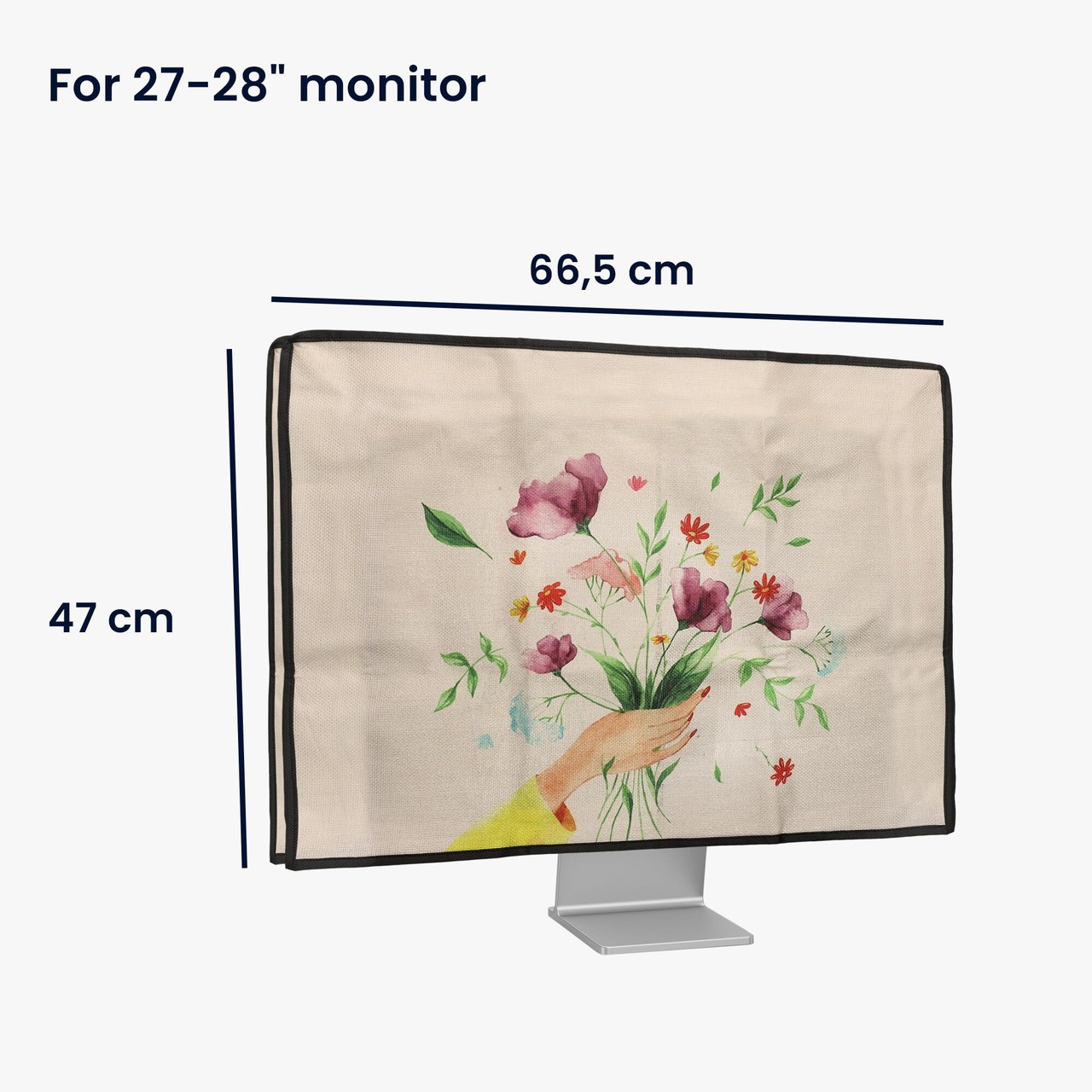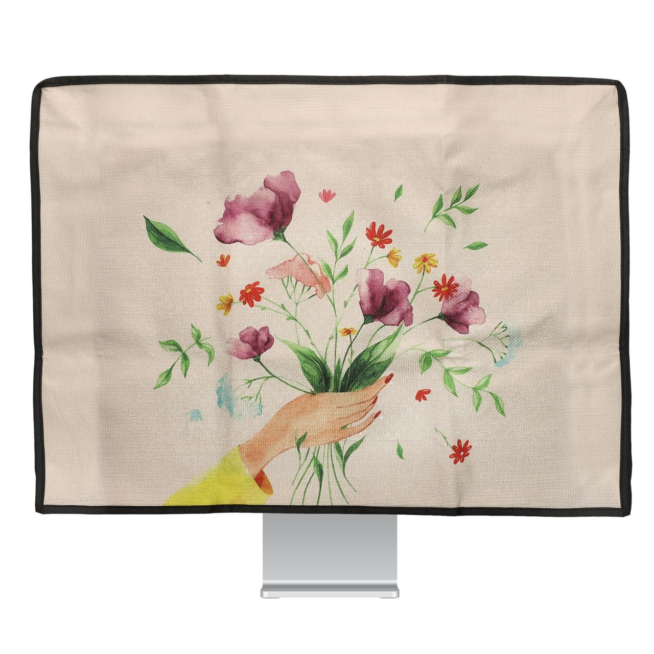 kwmobile 27-28"モニター対応 モニターカバー - PC 画面 パソコン ホコリ 防止 - 防塵 リネン 水彩の花束デザイン