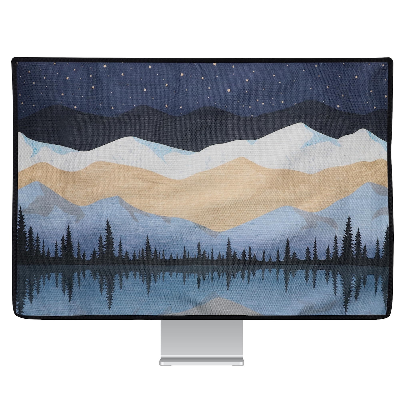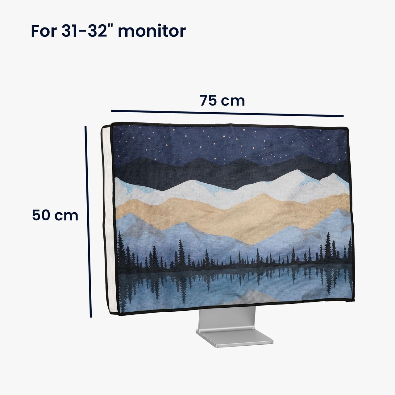kwmobile 31-32"モニター対応 モニターカバー - PC 画面 パソコン ホコリ 防止 - 防塵 リネン 夜の湖と星空デザイン