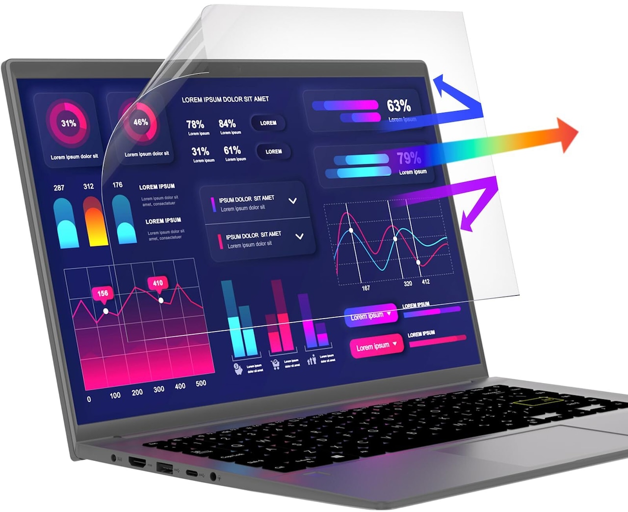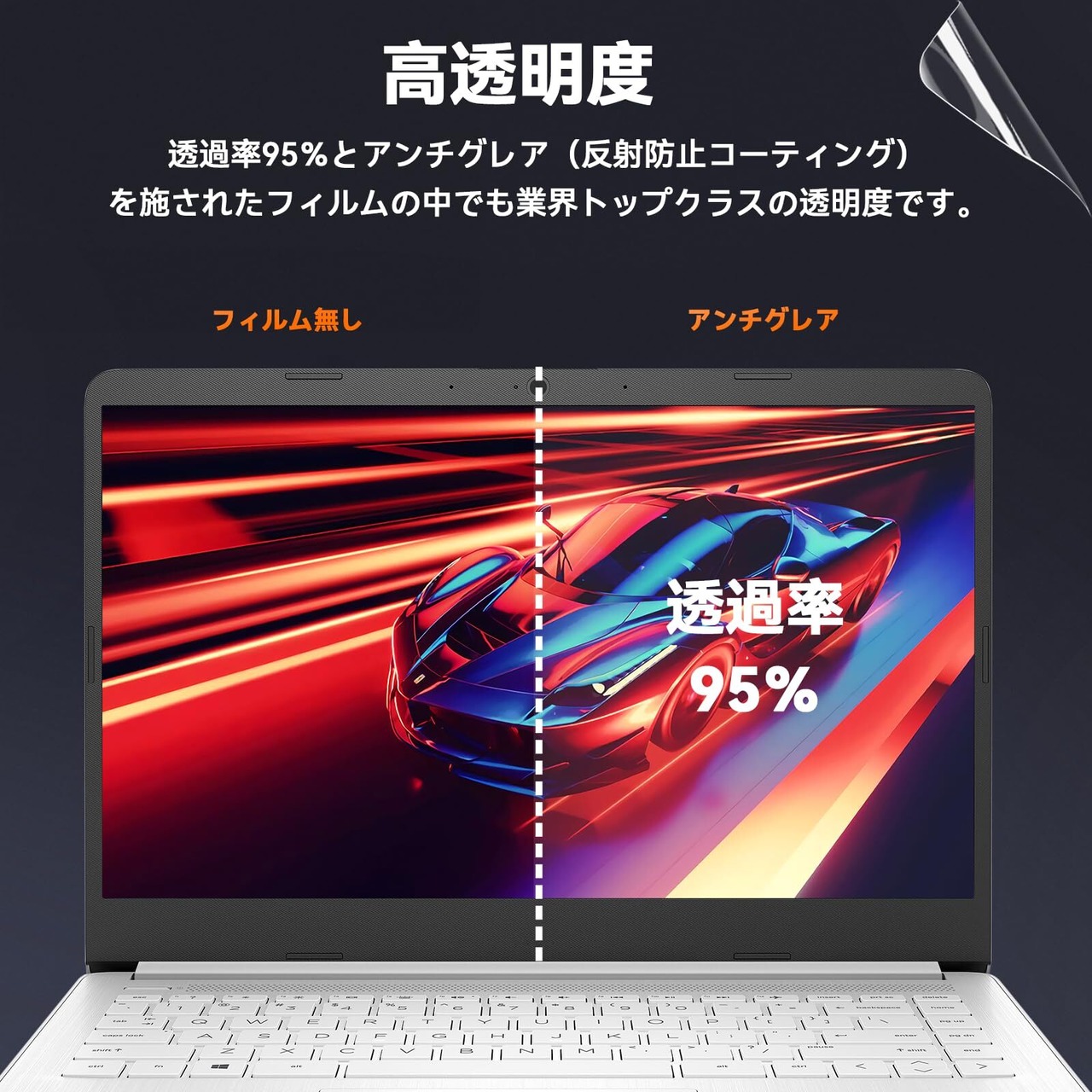 【超反射防止】:強い光による反射を抑え、画面が見えやすくなる超反射防止加工を施した ブルーライトカットタイプの液晶保護フィルムです。反射防止(アンチグレア)加工により、光の映り込みを軽減し、画面を見やすくします。