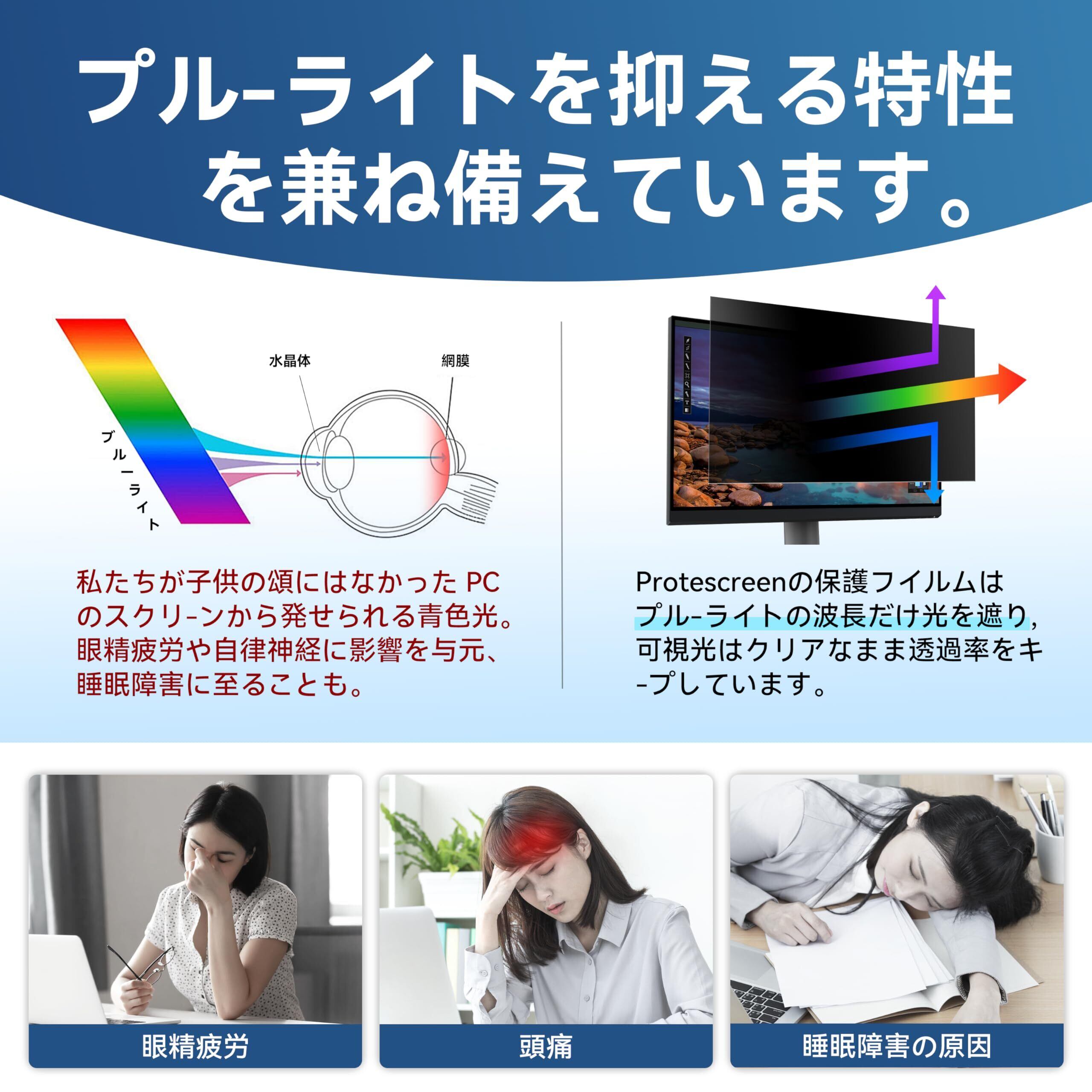 【ブルーライトカット】日本製の光学フィルター素材は、ブルーライトを92%、紫外線を98%カットし、画面から発せられる有害な光をすべてカットして目を保護します。透明度が高く強化された内蔵保護層は、高画質を実現するだけでなく、画面を傷から守ります。急いで注文して、ノートパソコンの画面プライバシーシールド23.8インチを手に入れ、画面と目を保護しましょう。