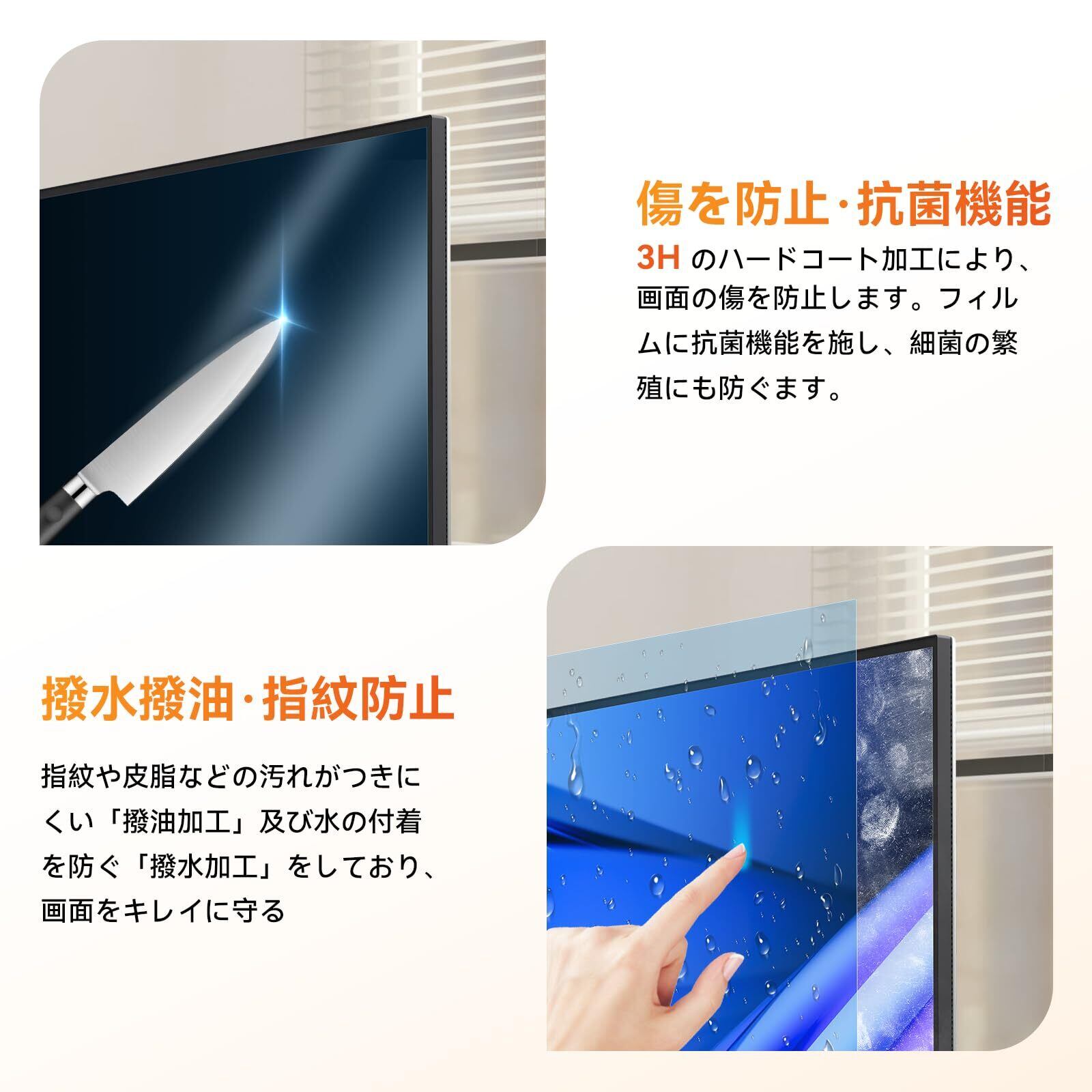 【指紋防止&抗菌性】:指紋や汚れが付きにくく、付いても簡単に拭き取ることができます。ホコリが付着しにくい帯電防止仕様です。タッチパネルにも対応しています。フィルム表面が抗菌処理されており、細菌の繁殖を防ぎます。