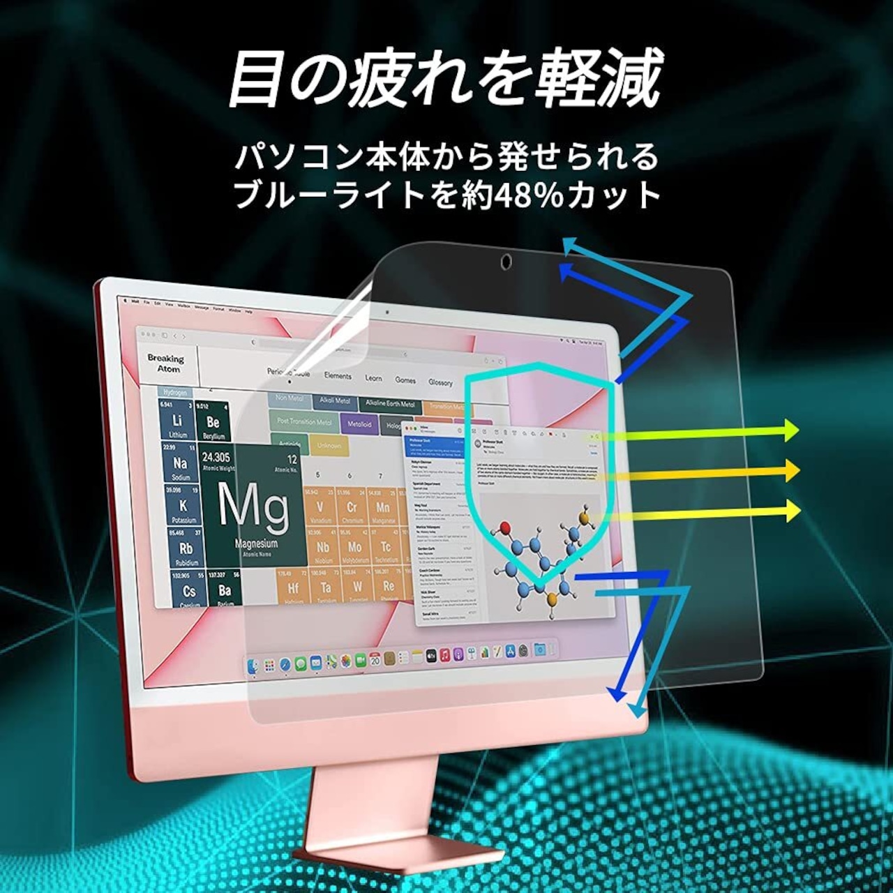 iMac 24 インチ (2024年 M4 /2023年 M3 / 2021年モデル) 対応 フィルム ブルーライトカット 保護フィルム 反射低減 アンチグレア 抗菌 「PCフィルター専門工房」
