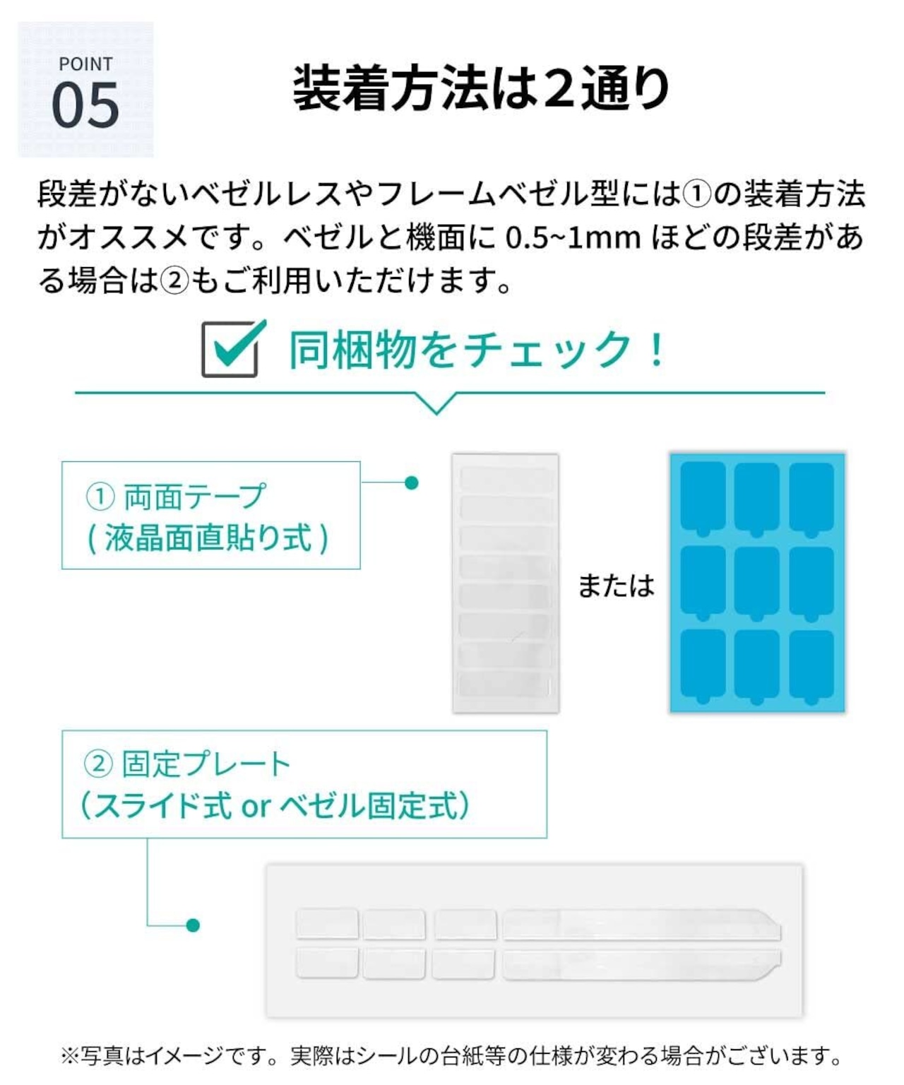[ 装着方法 ] <直張り方式> お使いのPCモニターに両面シールを貼り付けてフィルターを貼るだけ簡単ですぐにご利用いただけます。 ※ご利用のPCモニターの種類によっては可視領域より数ミリ小さい場合がございます。ご注文前に画像2枚目でフィルターサイズをご確認ください。