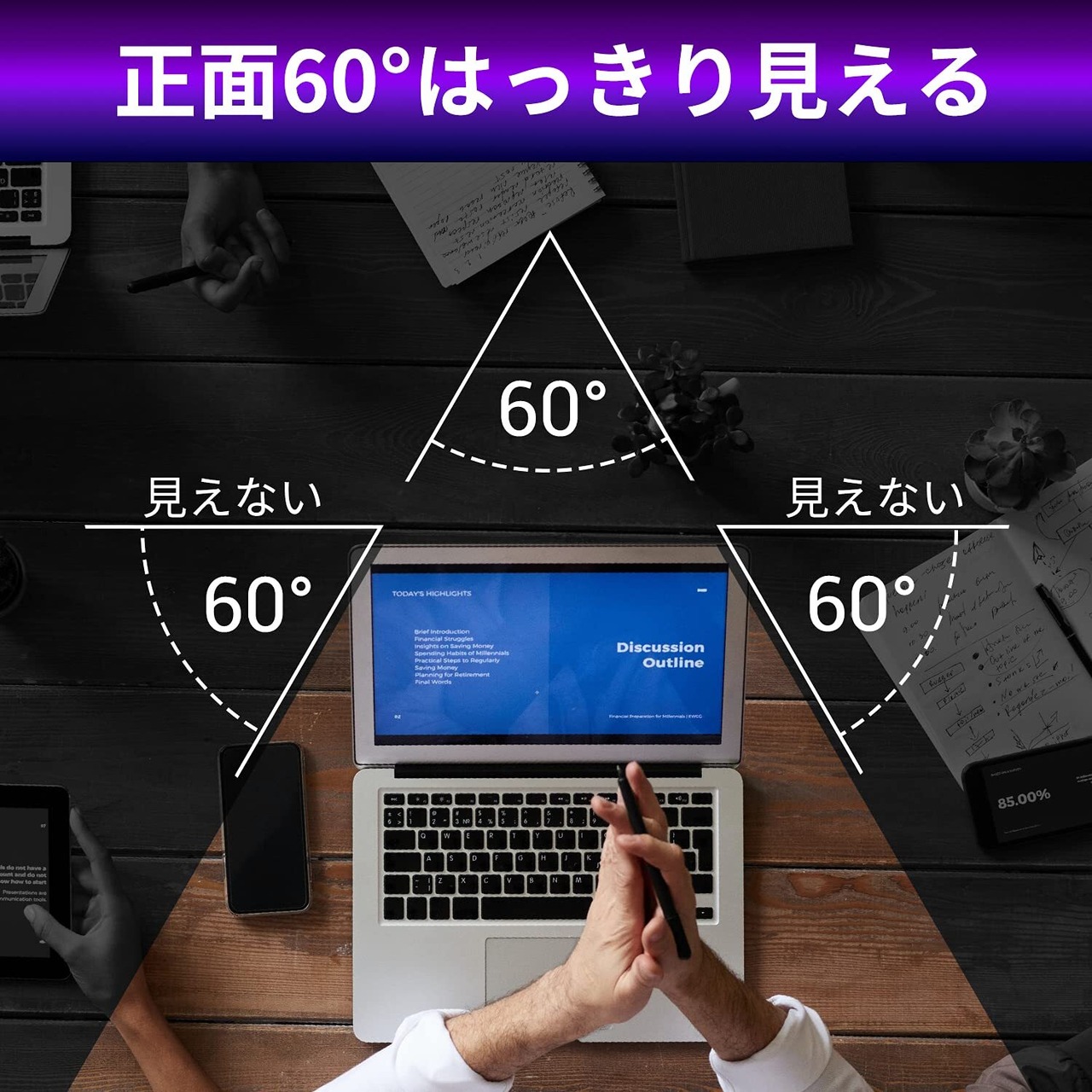 【対応サイズ】24インチ 16:9 532 x 299mm に対応します。モニターの画面正面を中心に60°(左右30°)より外の角度からは画面がまっ黒に見えるので、パソコンの画面上に個人情報が表示されたり撮影されたりするを防ぐために個人情報の盗難を防止します。