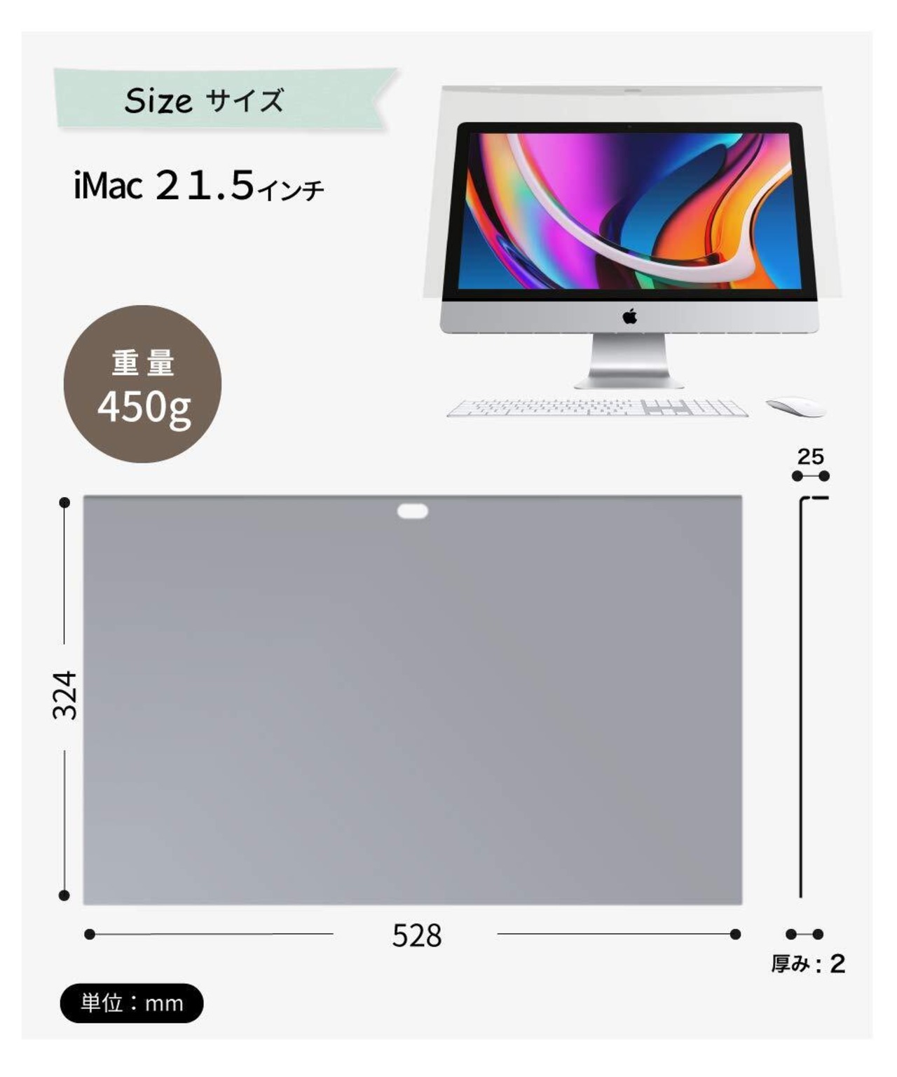 LOE(ロエ) iMac 21.5 ブルーライトカット フィルター 液晶 モニター スクリーン アクリル 保護 パネル フィルム ガード 据え置き型 (2020 iMac21.5 グレア)
