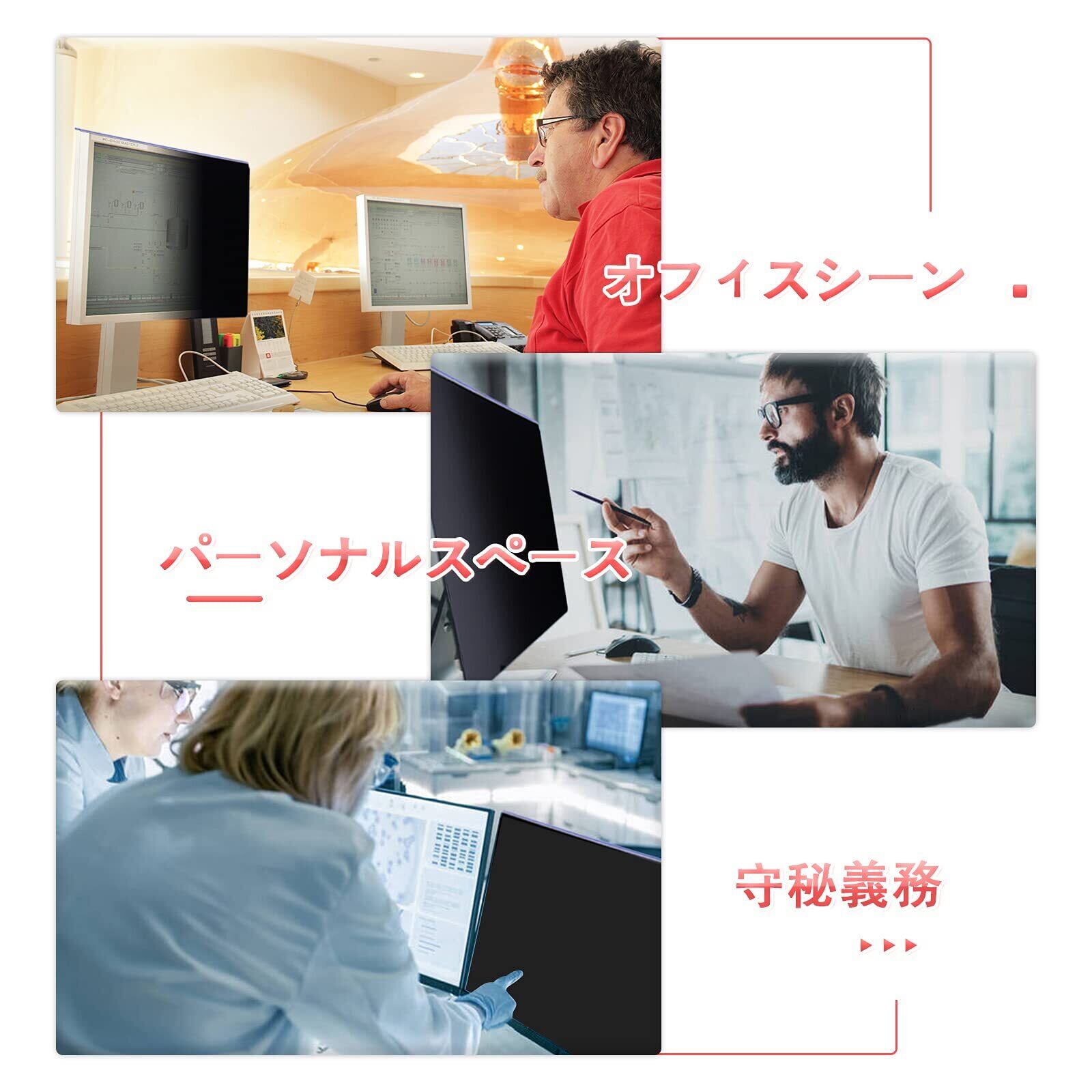 【取り付け簡単】 - ——シンプル、高速、便利。 プライバシー 24 インチ プライバシー フィルターの湾曲したフックをディスプレイ フレームに引っ掛けるだけで簡単にディスプレイを固定でき、フィルターは接着剤やスライド式の取り付け部品を使用せずに簡単に開閉できます。