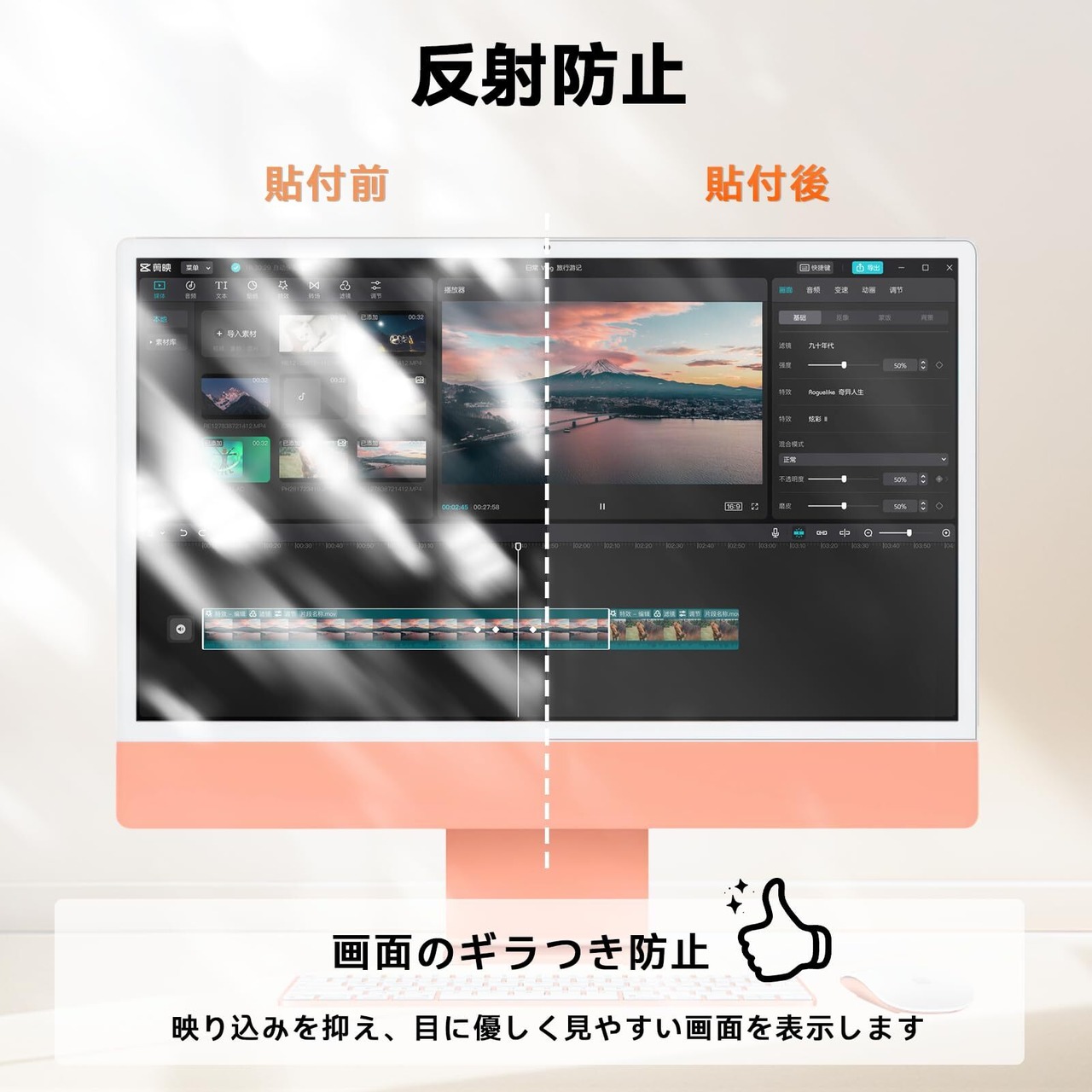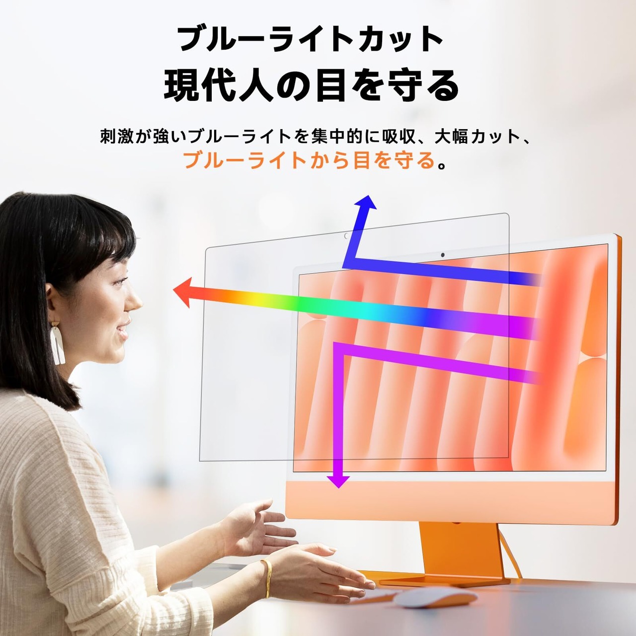 iMac 24 インチ (2024年 M4 /2023年 M3 / 2021年モデル) 用 フィルム ブルーライトカットフィルム アンチグレア 液晶保護フィルム PC液晶保護 ブルーライトカット 反射低減 指紋防止 抗菌 高透過率 日本素材 目に優しい Mamol