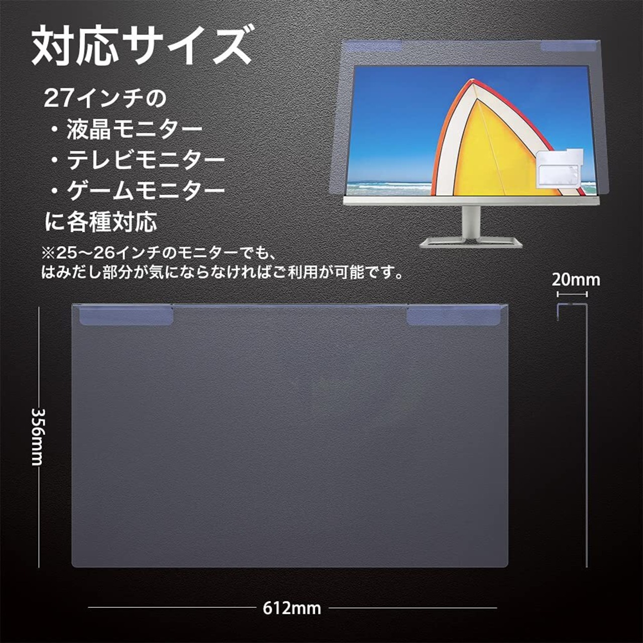【フィルターサイズ】612*356mm ( 27インチ 液晶モニター テレビモニター ゲームモニターに各種対応 )※25インチのものでも、はみ出し部分が気にならなければご利用が可能です。