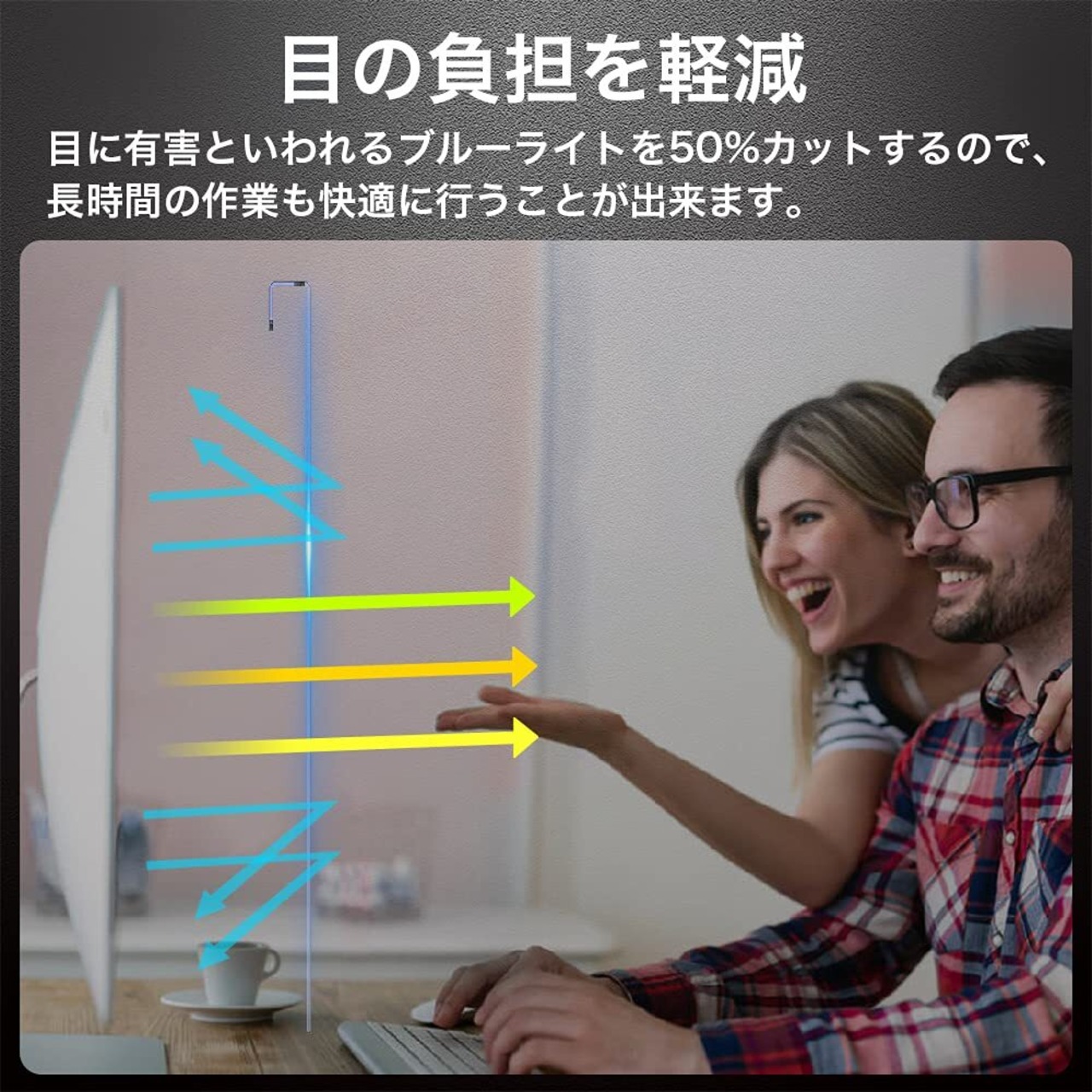 【ブルーライトカット】目に有害といわれるブルーライトのカット率:50%、紫外線カット率:99.9%。目の負担を軽減するため、長時間の作業に最適です。