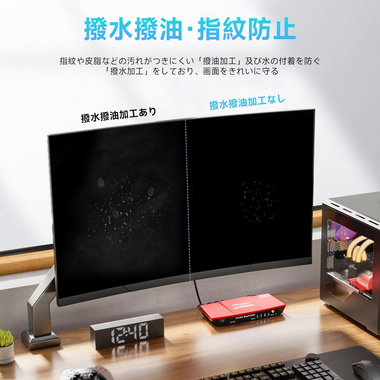 【ハードコード&フッ素加工】表面にあるハードコードと撥水撥油のフッ素加工によって、指紋や汚れが付きにくくなり、付いたところ、あっさりと拭き取れます。また3Hの硬度で擦傷から、スクリーンを守り、いつでも綺麗な画面を保ちます。