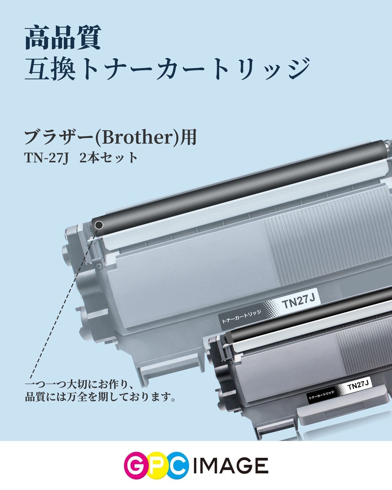 GPC Image 互換トナーカートリッジ 27J 2本セット TN-27J 大容量タイプ ブラザー(Brother)用 TN27J 互換トナー 印刷枚数:約3000枚 HL-2240D HL-2270DW DCP-7060D DCP-7065DN MFC-7460DN FAX-7860DW 対応の 27J トナー 個包装