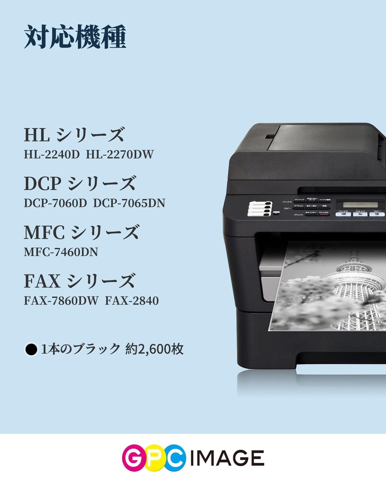 【対応機種】ブラザー(Brother)用 TN-27J 互換トナーカートリッジで、HL-2240D HL-2270DW DCP-7060D DCP-7065DN MFC-7460DN FAX-7860DW FAX-2840 のプリンターにご対応します。(TN-11J対応機種にも利用する可能性があるのでご確認ください)
