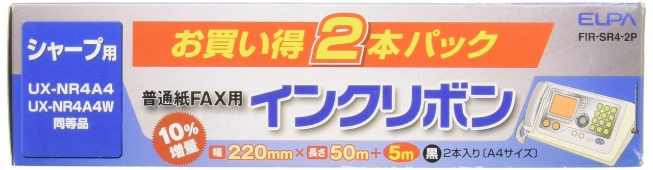 エルパ (ELPA) FAXインクリボン インクカートリッジ シャープ用 A4 50m+5m 3本入 FIR-SR4-2P