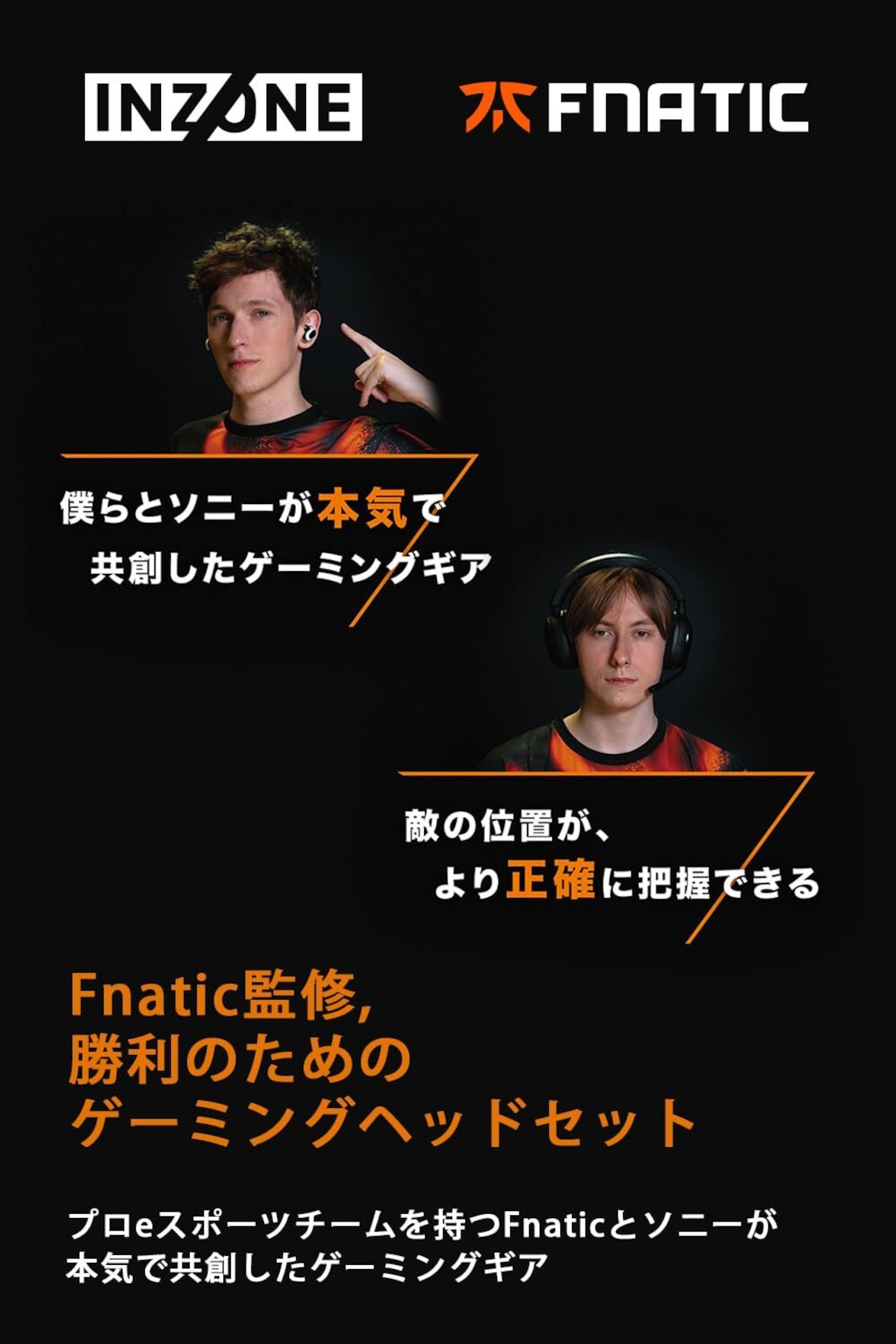 多くの国際大会で優勝を収め、世界的にも絶大な人気を誇るプロeスポーツチーム「Fnatic」。INZONEは、輝かしい実績を誇る彼らと商品共創を含むスポンサーシップ契約を締結しました。ソニー は、全てのプレイヤーのパフォーマンスを最大限に発揮するために、デバイスに革新をもたらし、ゲームプレイのレベルを向上するという目標をFnaticと共有し、ゲームプレイヤーの体験を強化していきます。X」を採用。ドーム部とエッジ部に異なる素材を組み合わせた振動板構造で、柔らかいエッジが沈み込む低音域を、軽量高剛性のドームが伸びのある高音域を再生します。ゲーム内のすべての音を余すことなく再現することで、迫力のある爆発音から微細な足音まで、ゲームの世界に入り込んだかのような没入体験を実現します。