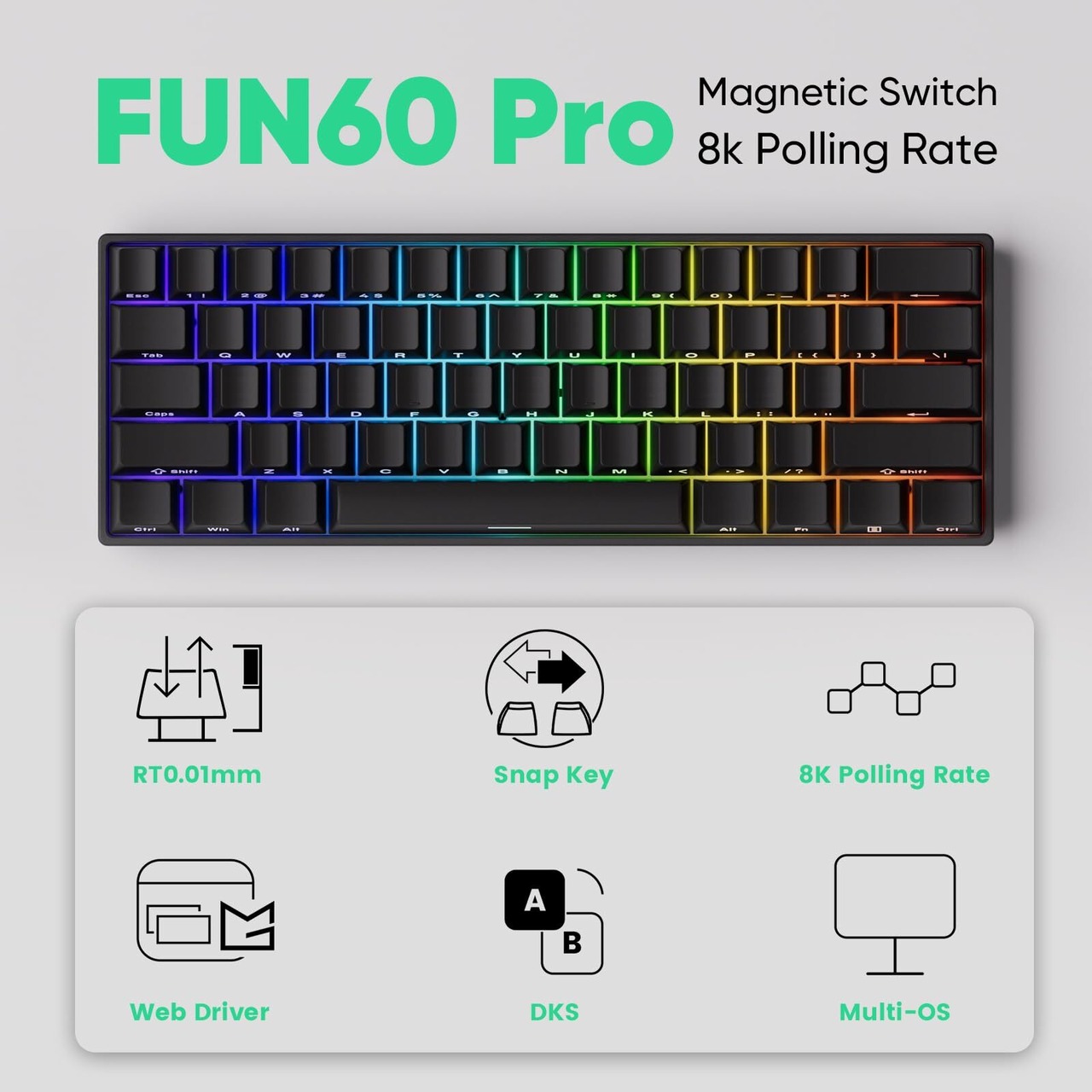 【国内正規品】MonsGeek(モンスギーク) FUN60 Pro SP 有線モデル HEセンサー 0.01mm ラピッドトリガー対応 磁気スイッチ Akko Glare Magnetic Switch 英語配列 テンキーレス サイドプリント 有線8K ホットスワップ SnapKeys (SOCD)対応 ARGB対応 高コスパ ゲーミングキーボード Black