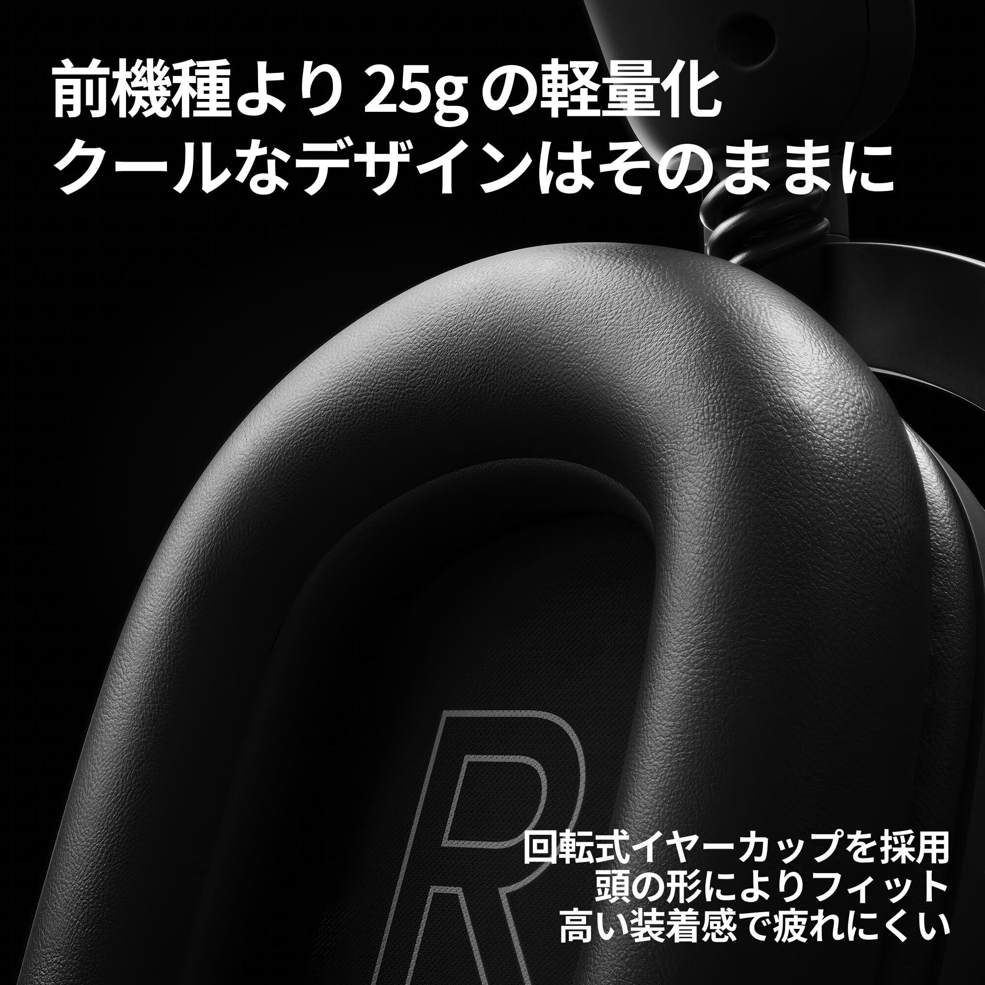 前機種と比較して25gの軽量化を実現し、長時間の使用でも疲れにくくなっています。回転式イヤーカップで、ヘッドセットのかけ心地も向上し、頭の形によりフィット。さらに高い装着感を実現しました。ヘッドセットの首掛けも、邪魔になりにくいデザインです。