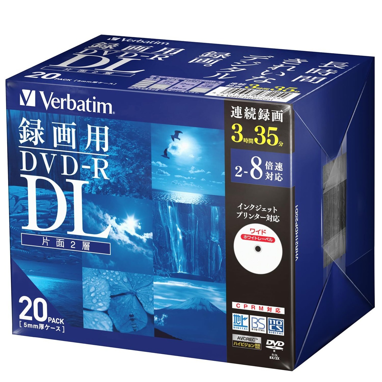 バーベイタムジャパン(Verbatim Japan) 1回録画用 DVD-R DL CPRM 215分 20枚 ホワイトプリンタブル 片面2層 2-8倍速 VHR21HDP20D1