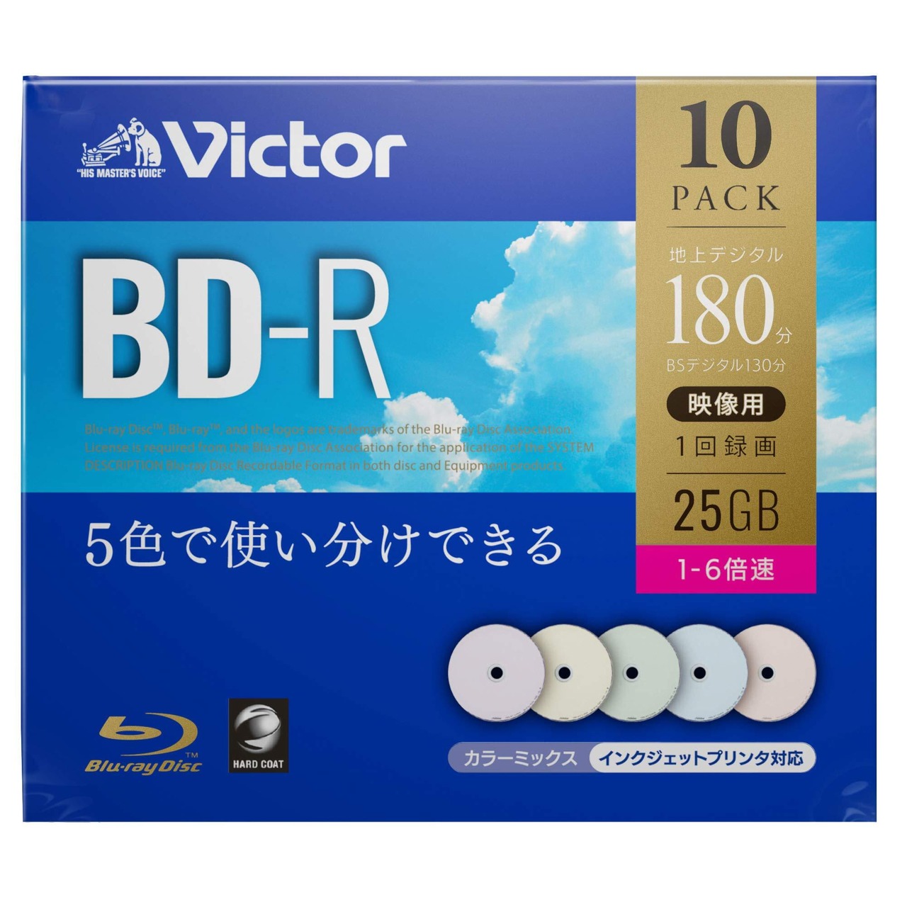 ビクター(Victor) 1回録画用 BD-R VBR130RPX10J1 (片面1層/1-6倍速/10枚) カラーMIX