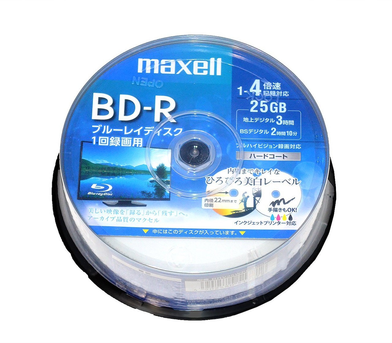 マクセル(maxell) 録画用 BD-R 標準130分 4倍速 ワイドプリンタブルホワイト 30枚スピンドルケース BRV25WPE.30SP