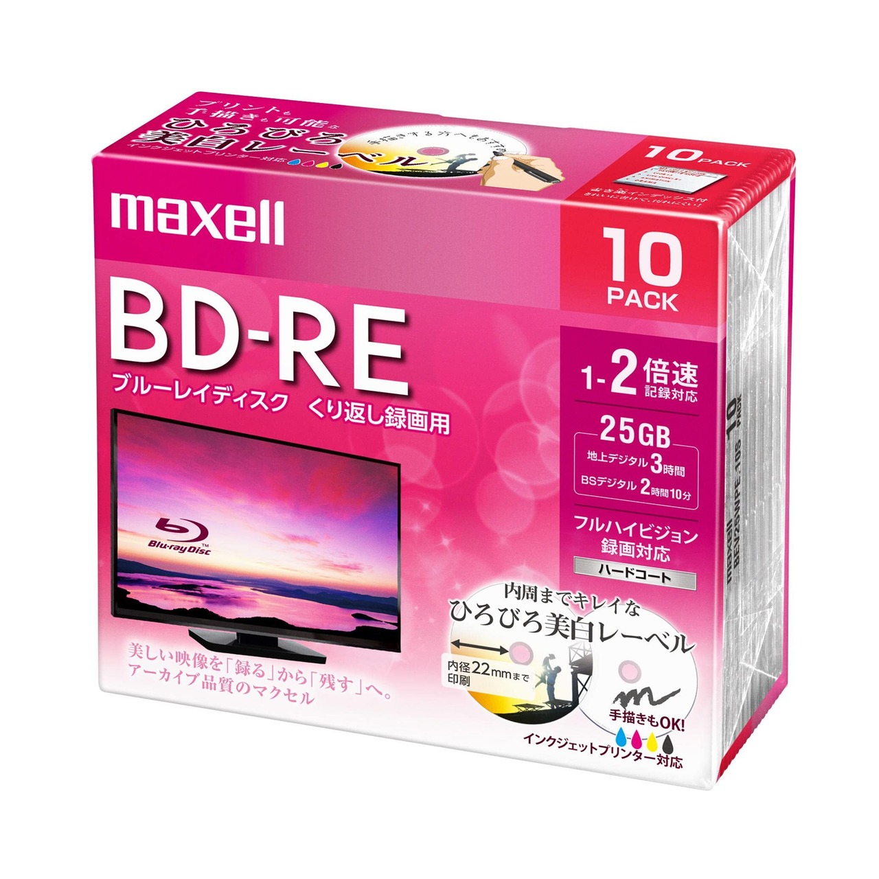マクセル(maxell) 録画用 BD-RE 標準130分 2倍速 ワイドプリンタブルホワイト 10枚パック BEV25WPE.10S
