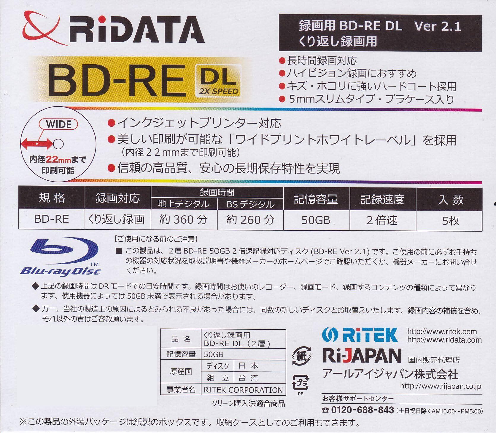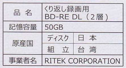 こちらのBD-RE DLは台湾RITEK工場でディスクの製造ラインの事情で、記録面を「日本のディスク工場で作成」(※Panasonicと同じ工場)したディスクを台湾に輸入しましてレーベル面をRITEKの工場で作成。