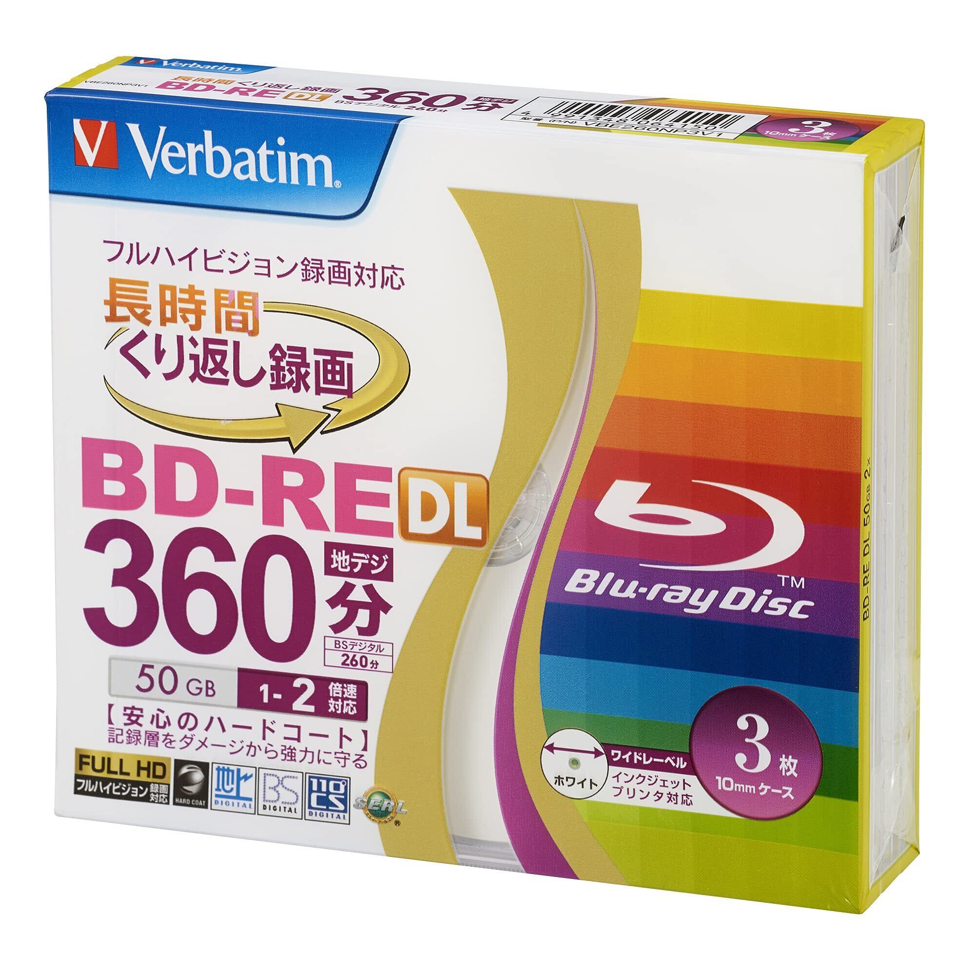 バーベイタムジャパン(Verbatim Japan) くり返し録画用 ブルーレイディスク BD-RE DL 50GB 3枚 ホワイトプリンタブル 片面2層 1-2倍速 VBE260NP3V1