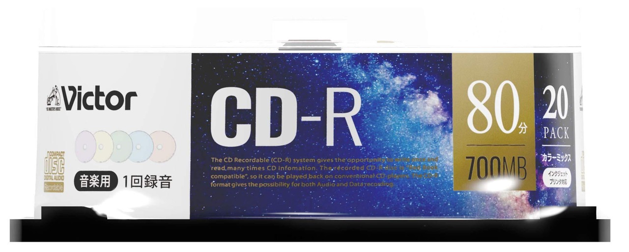 ビクター Victor 音楽用 CD-R 80分 20枚 カラーMIXプリンタブル AR80FPX20SJ1