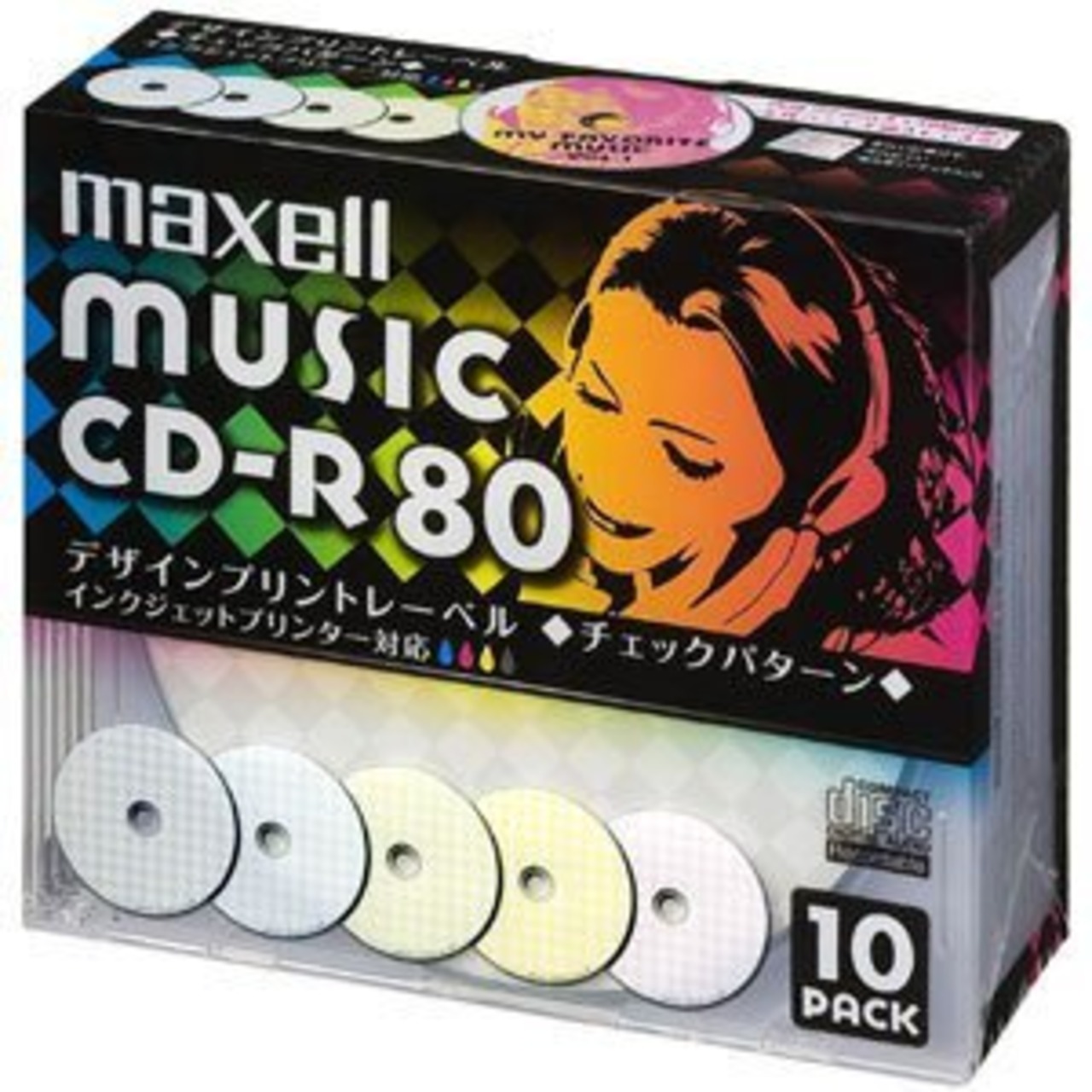 maxell 音楽用 CD-R 80分 インクジェットプリンタ対応デザインプリントワイド印刷) 10枚 5mmケース入 CDRA80PMIX.S1P10S