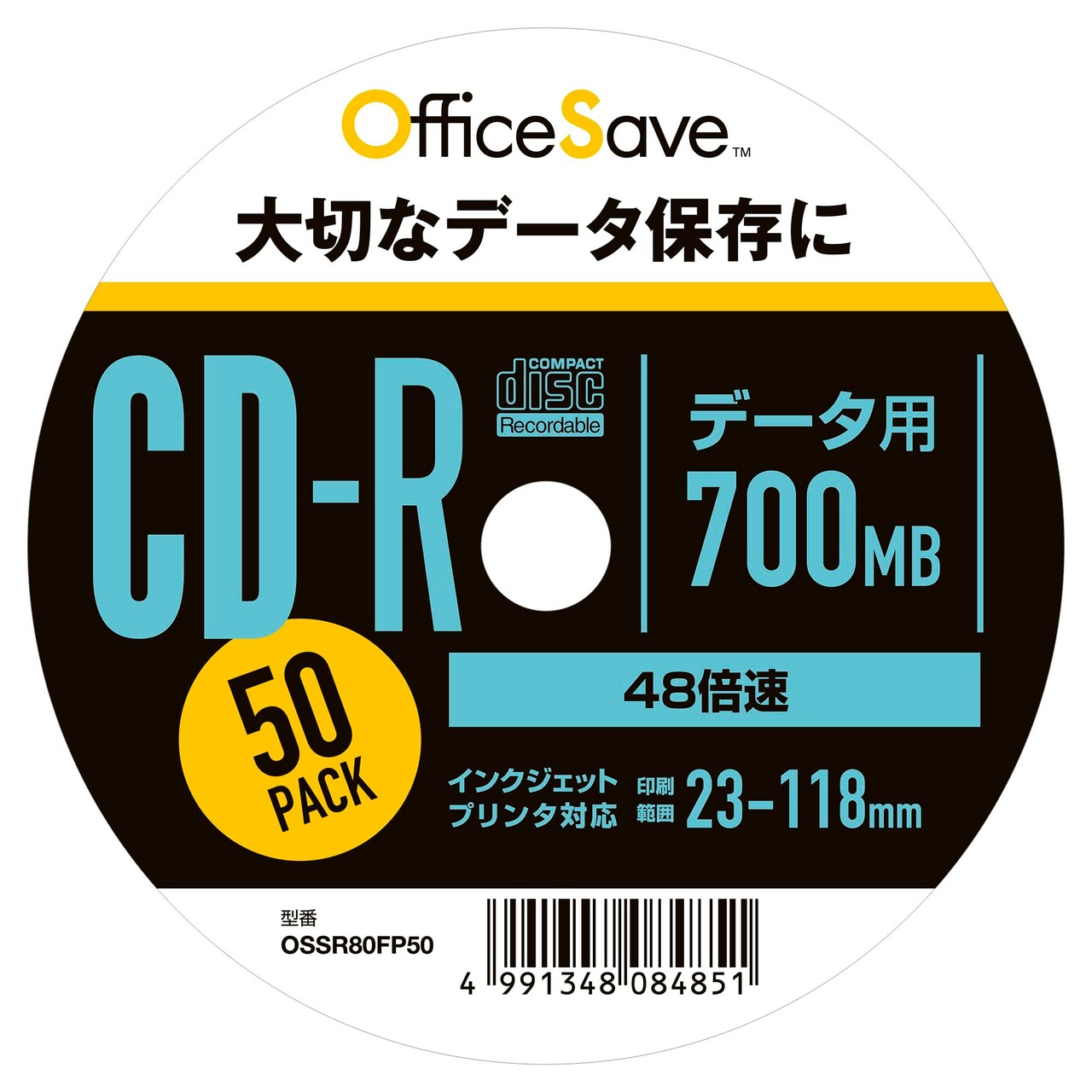 [オフィスセーブ] 音楽用 CD-R 80分 50枚 インクジェットプリンタ対応(ホワイト) 48倍速 OSMUR80FP50