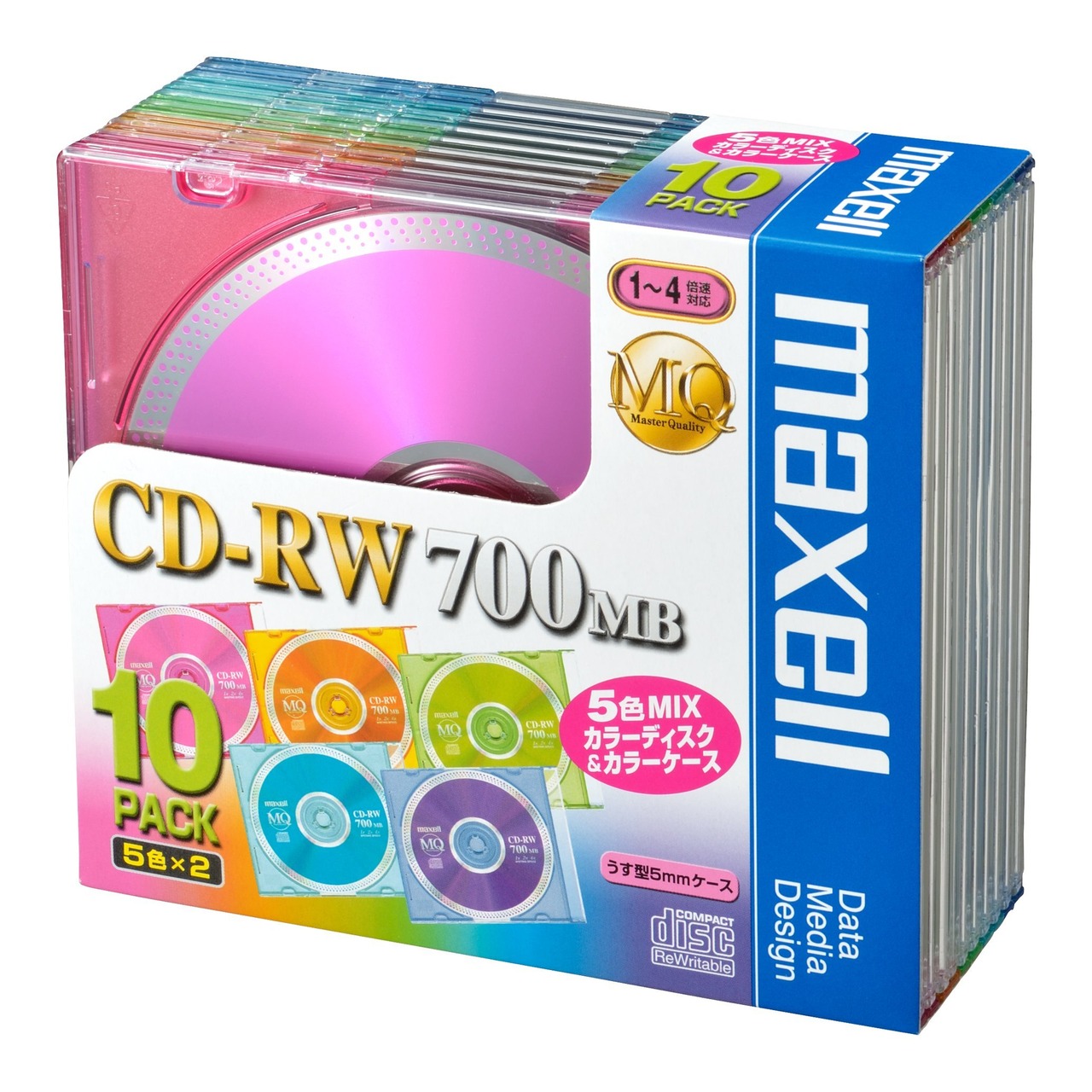 maxell データ用 CD-RW 700MB 4倍速対応 カラーMIX 10枚 5mmケース入 CDRW80MIX.1P10S